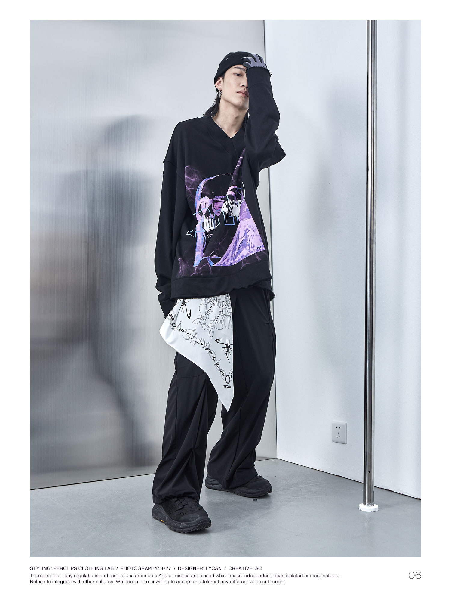 R-Dpercent DP24-076 灰色灵缇印花针织复合空气层宽松百搭挺阔长袖连帽卫衣