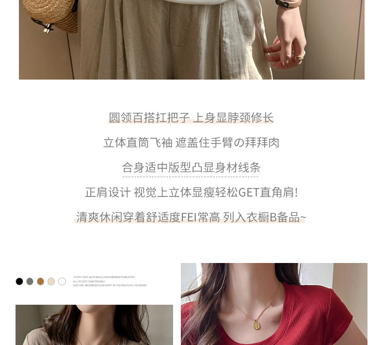 莱赛尔天丝宽松正肩短袖t恤女式T高级感小飞袖夏季显瘦遮肉上衣