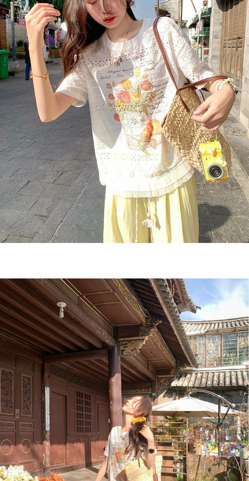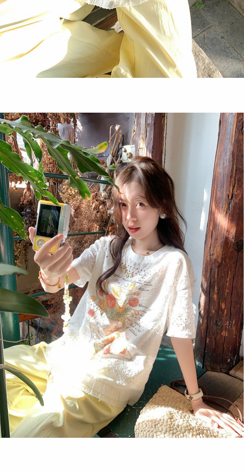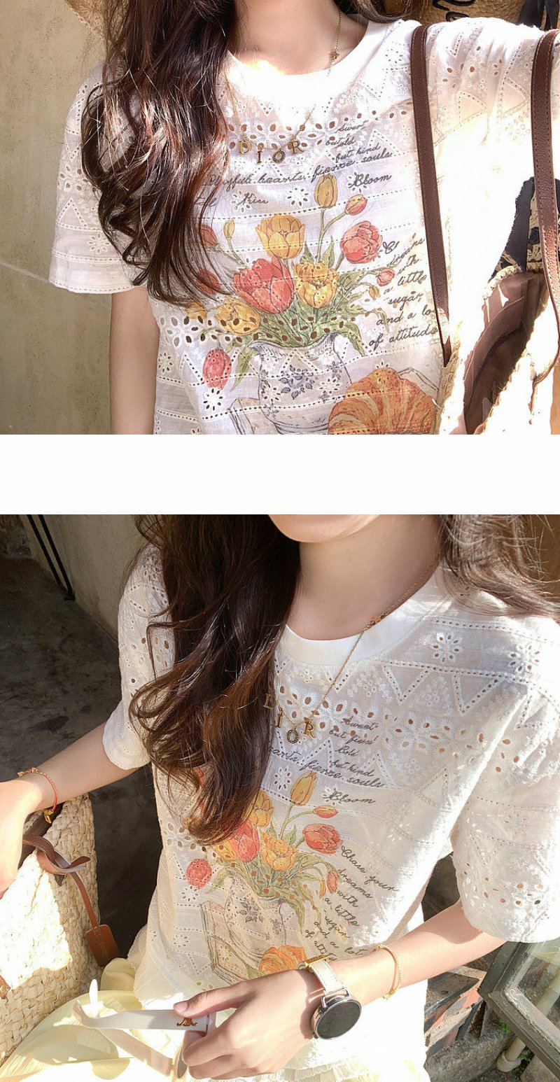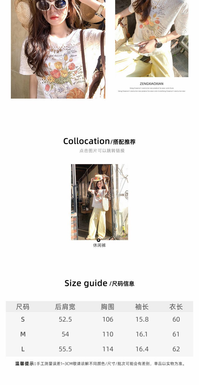 <曾小咸推荐>韩系蕾丝镂空宽松短袖t恤女