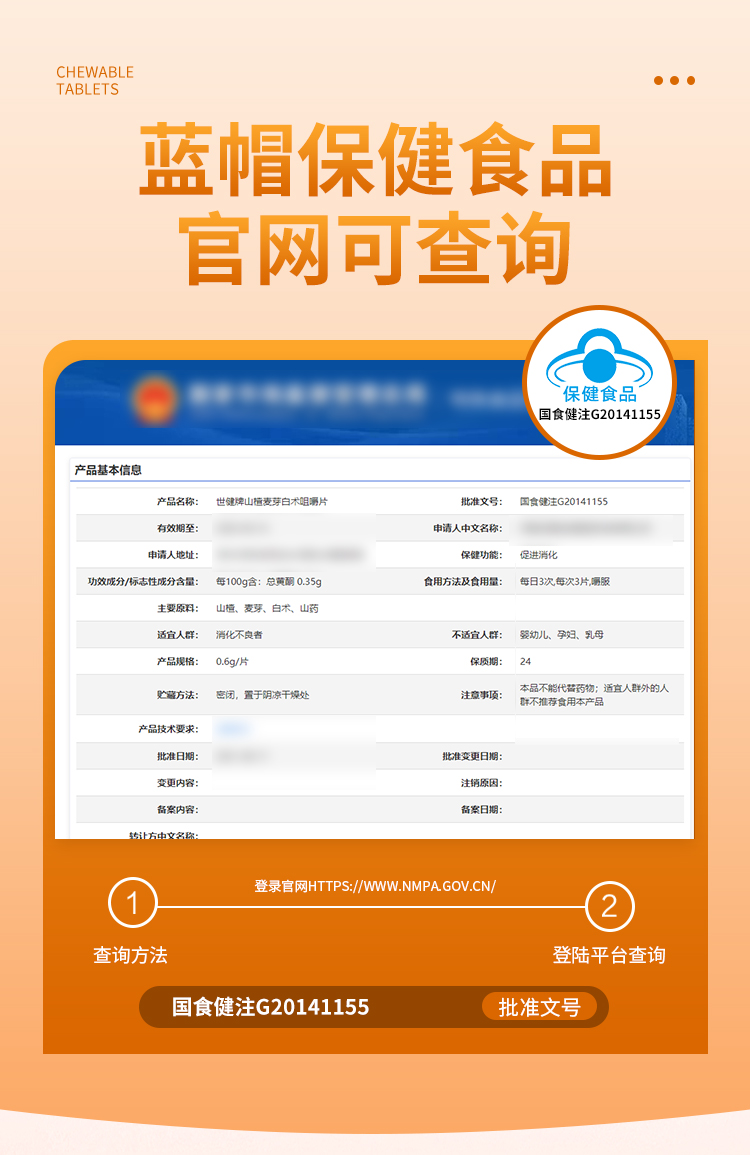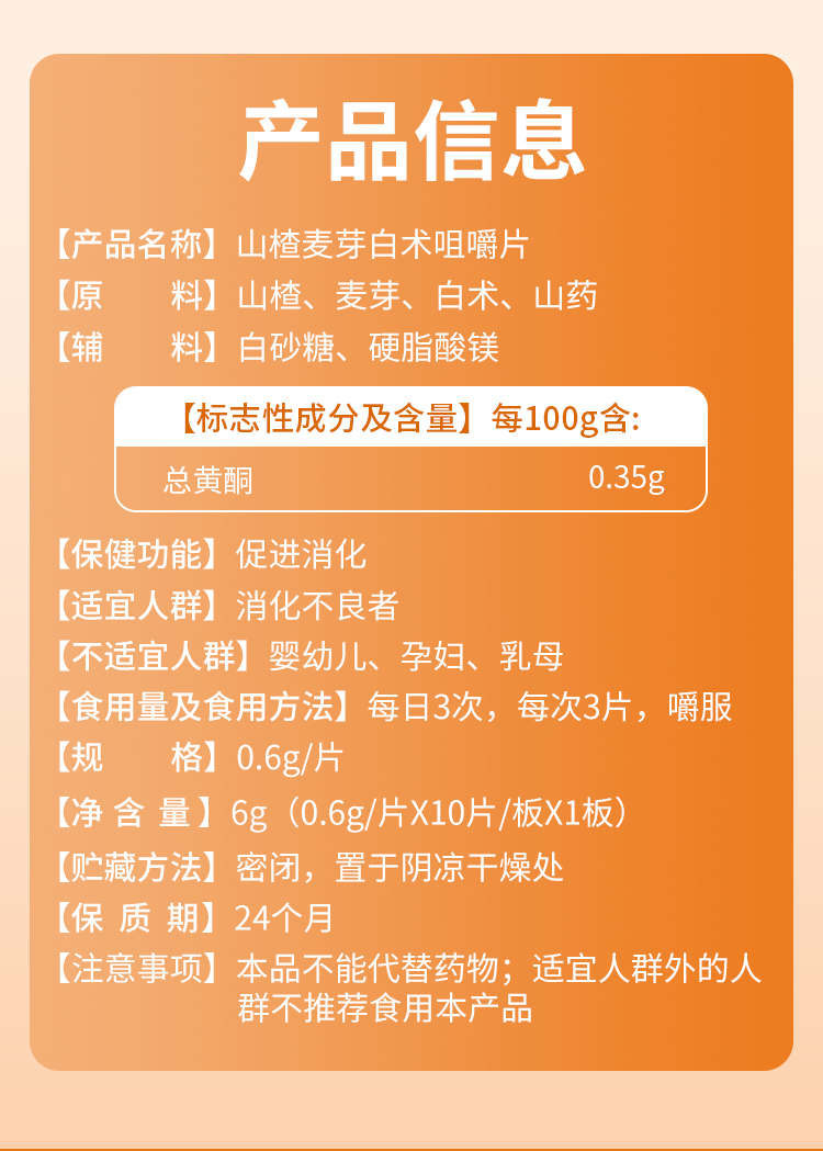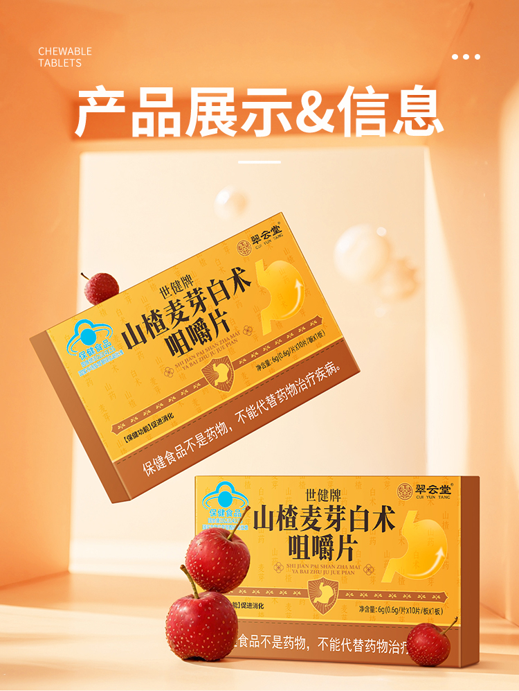 翠云堂山楂麦芽白术咀嚼片 10粒/盒
