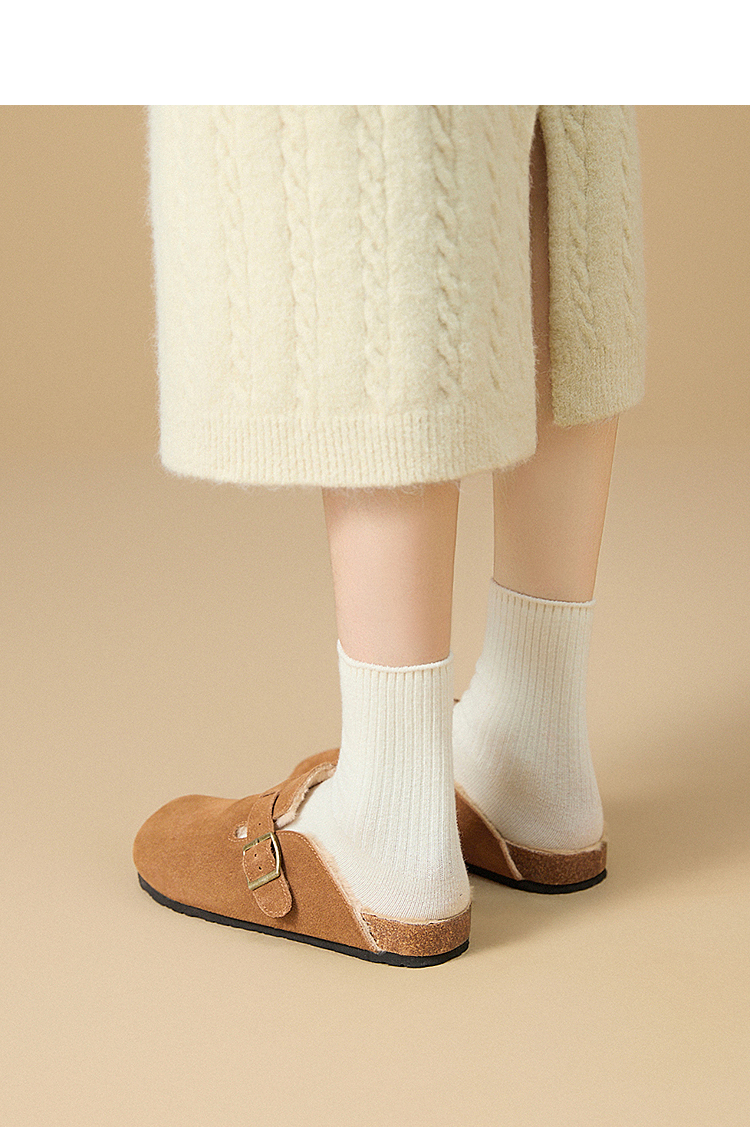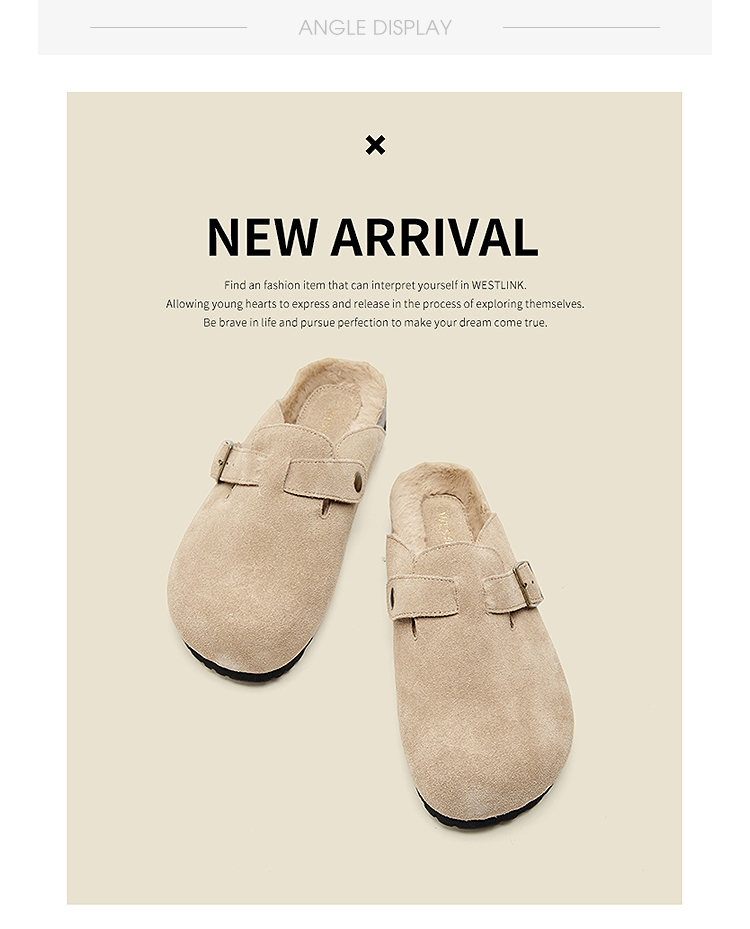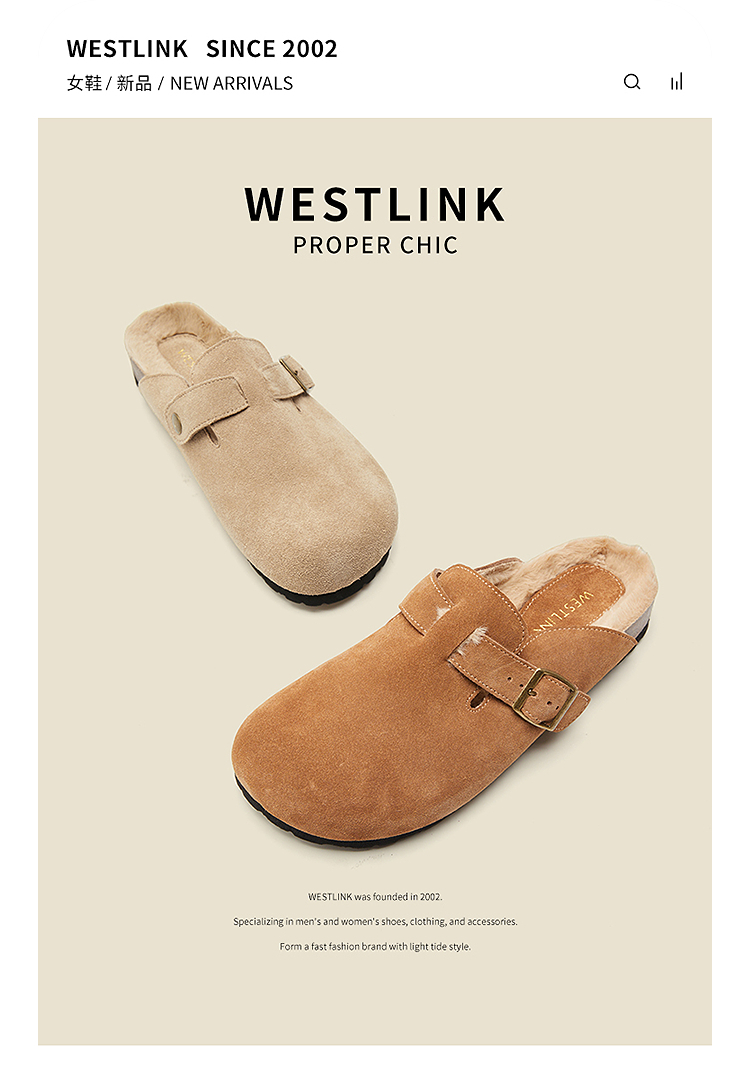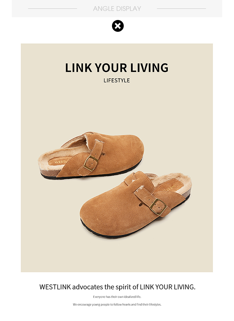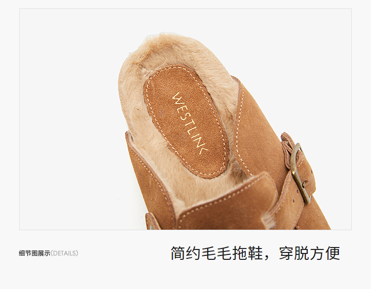 西遇加绒勃肯鞋女新款秋冬真皮懒人外穿厚底毛毛鞋包头半拖鞋20034294