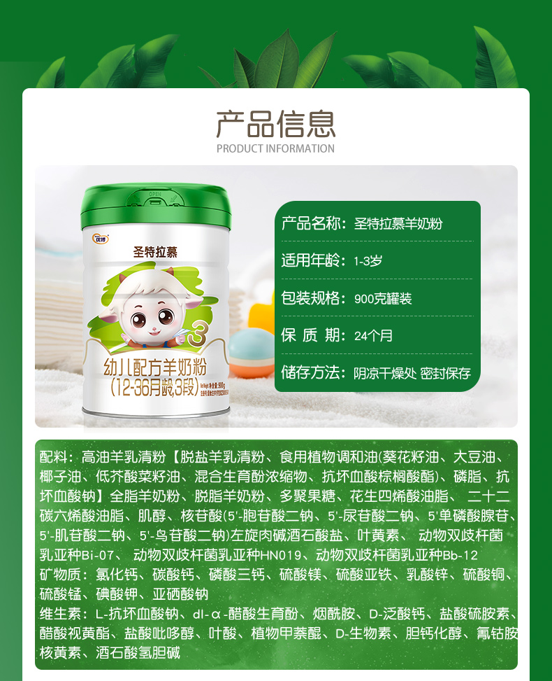【加好友有优惠】圣特拉慕羊奶粉3段900g*6罐【顺丰包邮】