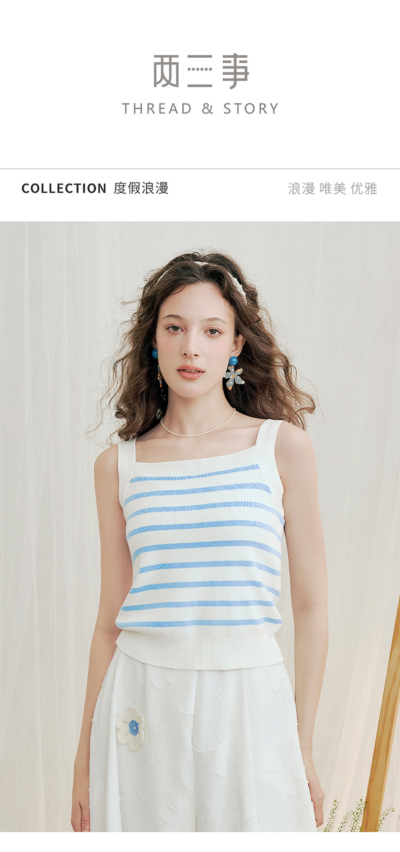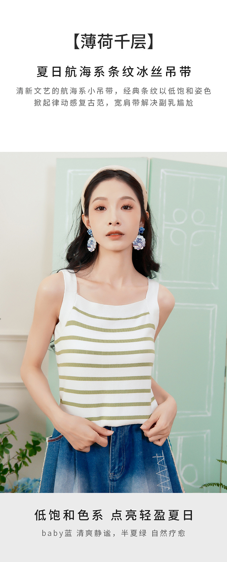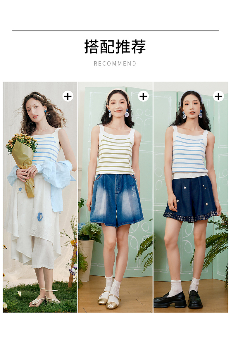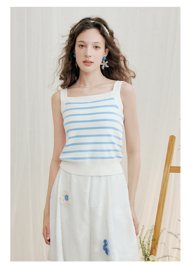 两三事薄荷千层 2025夏季新款海军风条纹吊带针织衫女