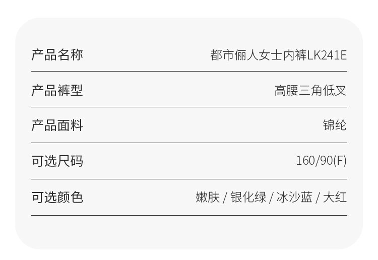都市丽人时尚系列薄透丝滑锦泳提花三角低叉女士内裤LK241E