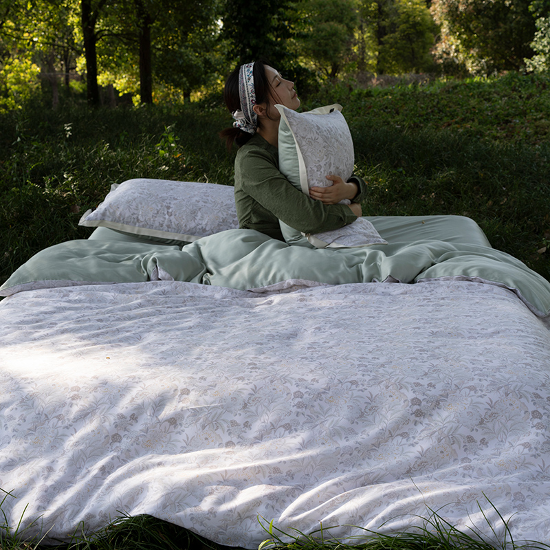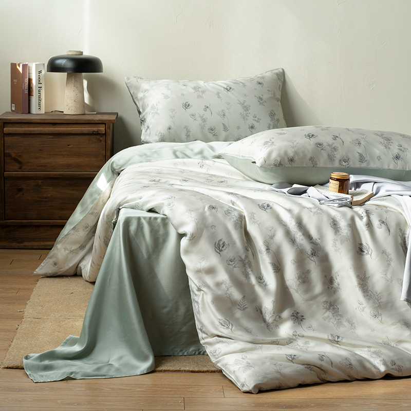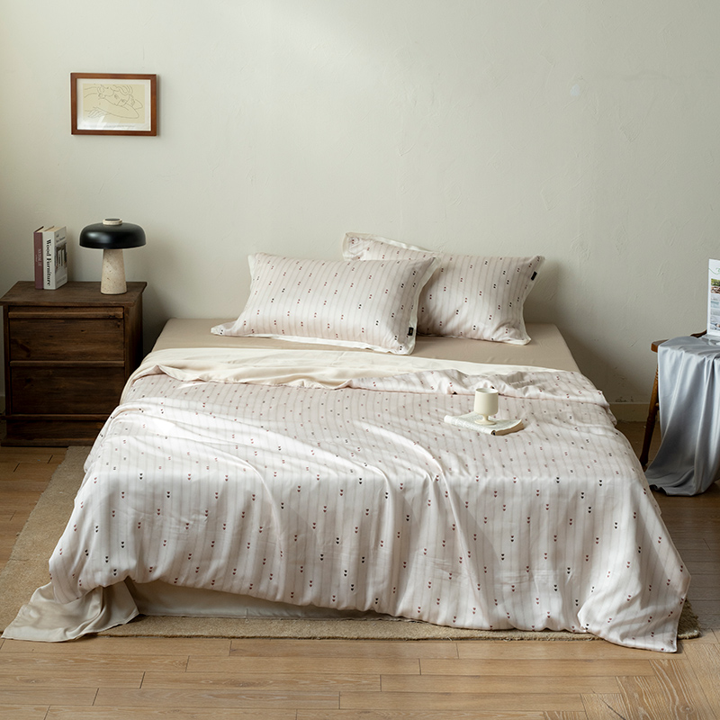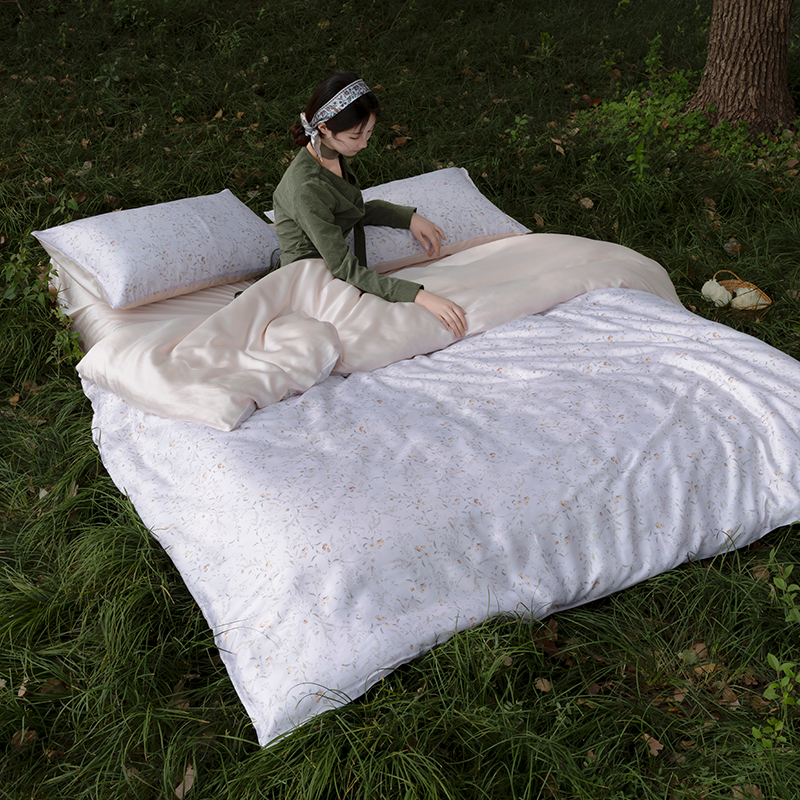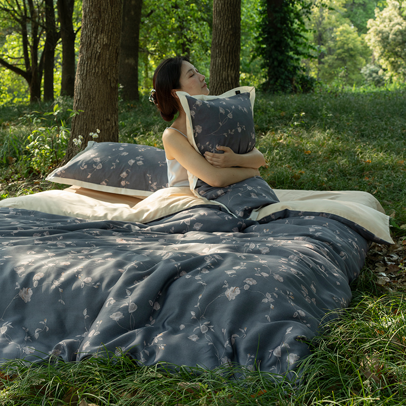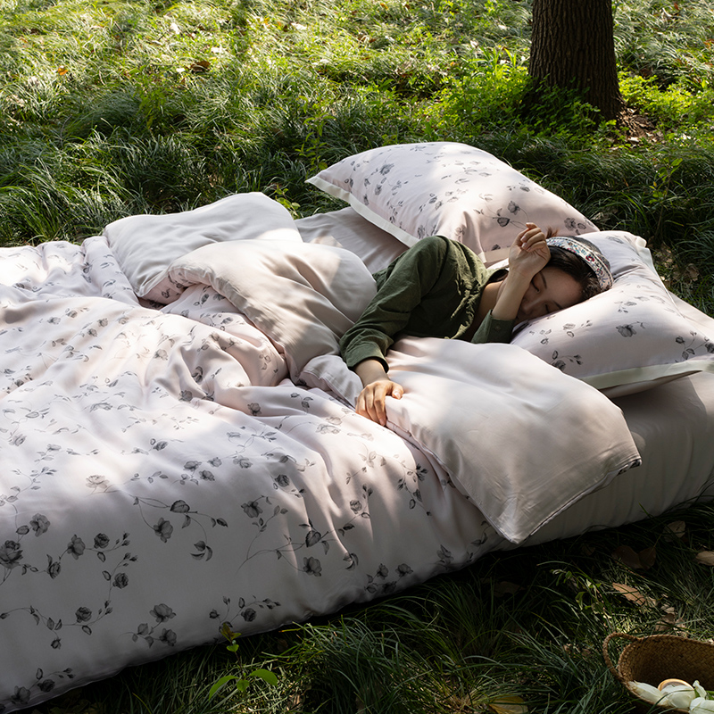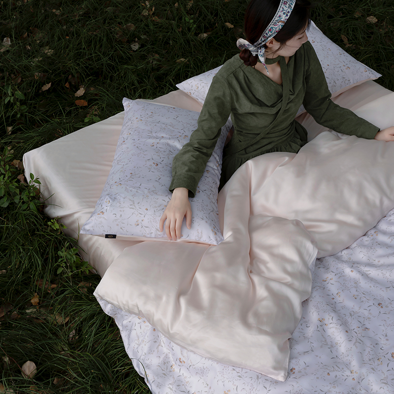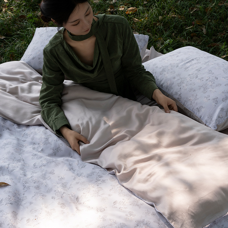 1、100%莱赛尔纤维,源自自然的纯净纤维,触感丝滑如绸,却又比丝绸更加透气吸湿。每一寸面料,都经过精心挑选与织造,只为给你最细腻的呵护。