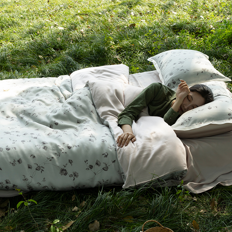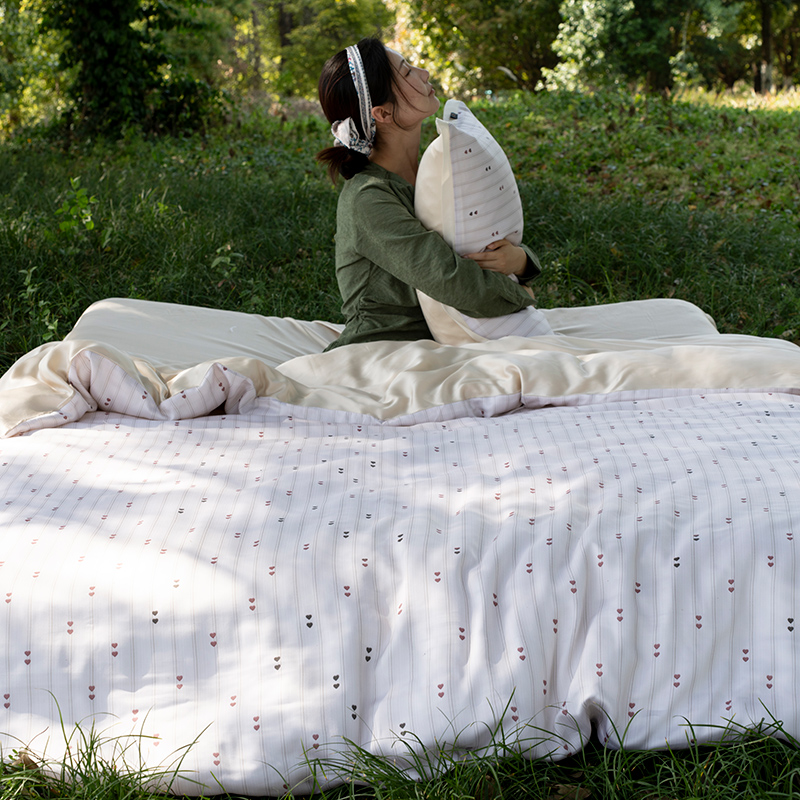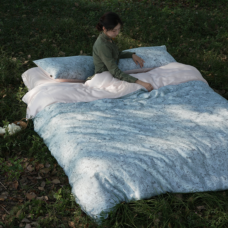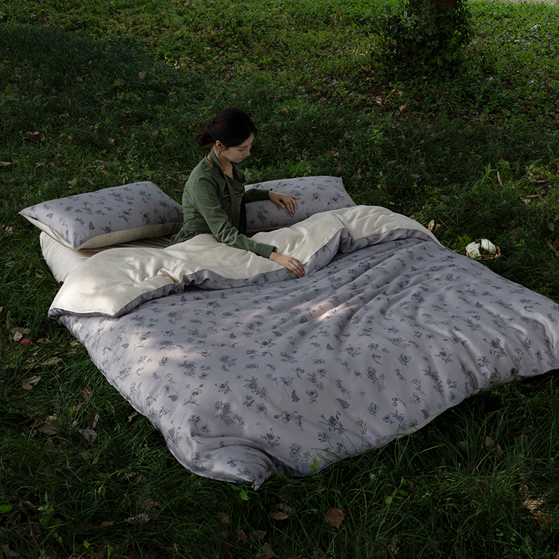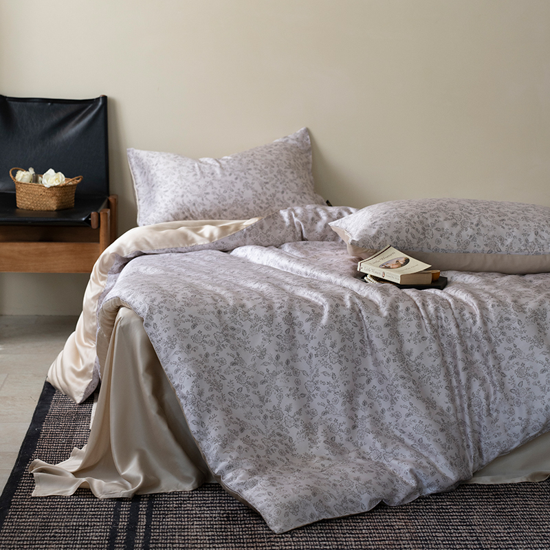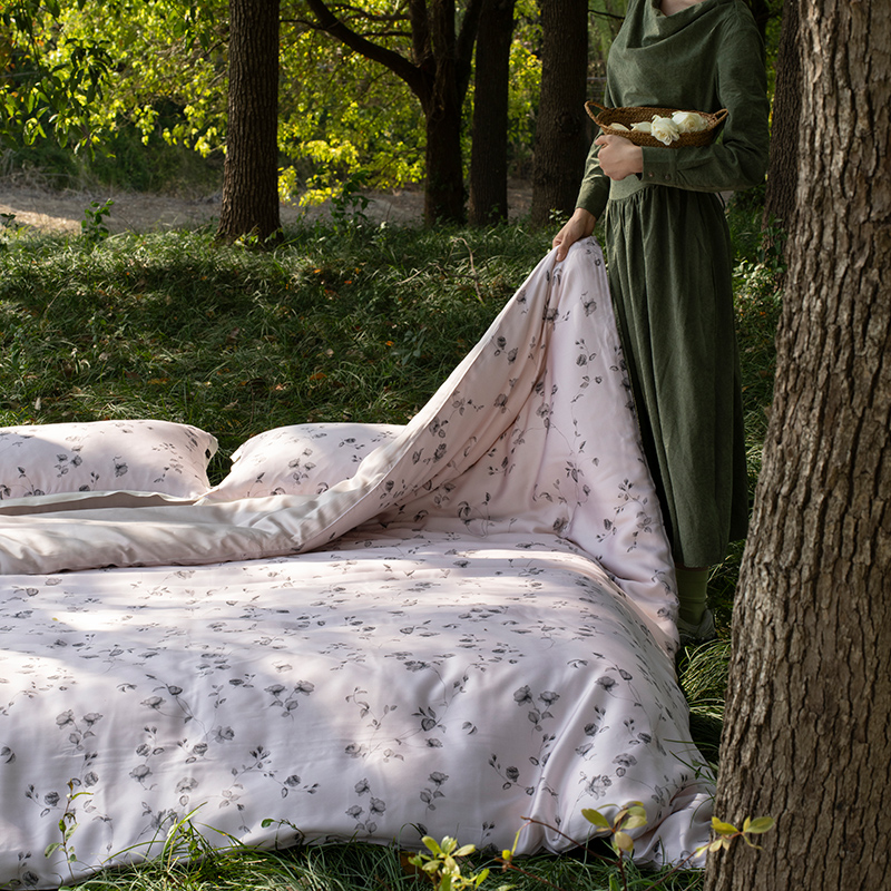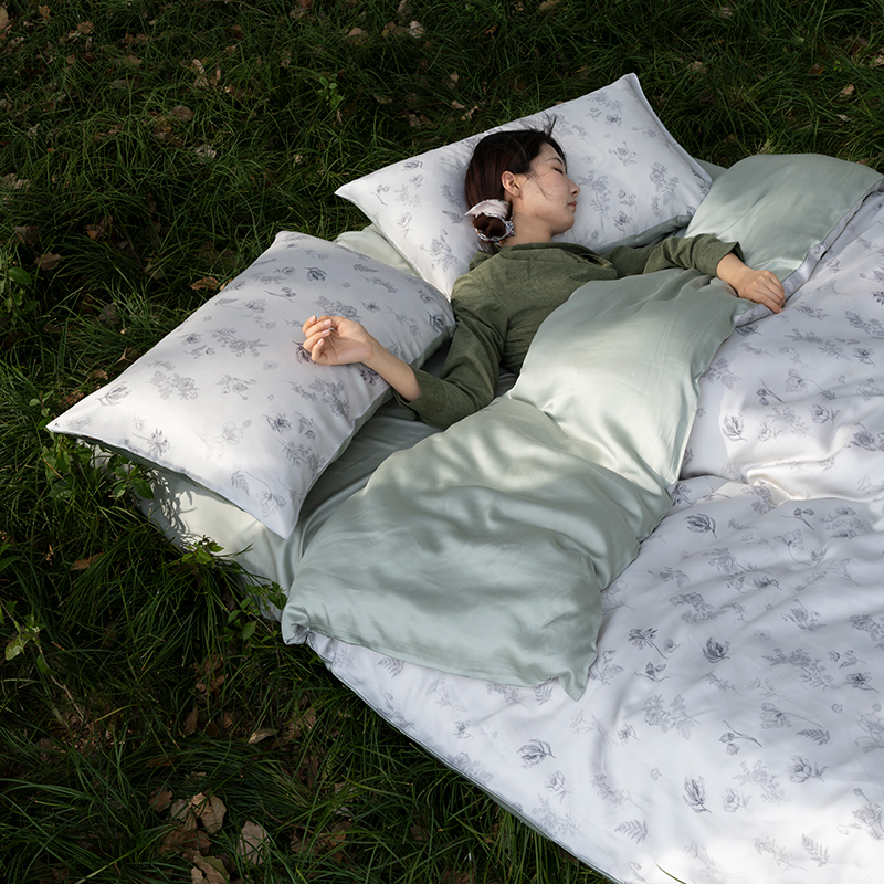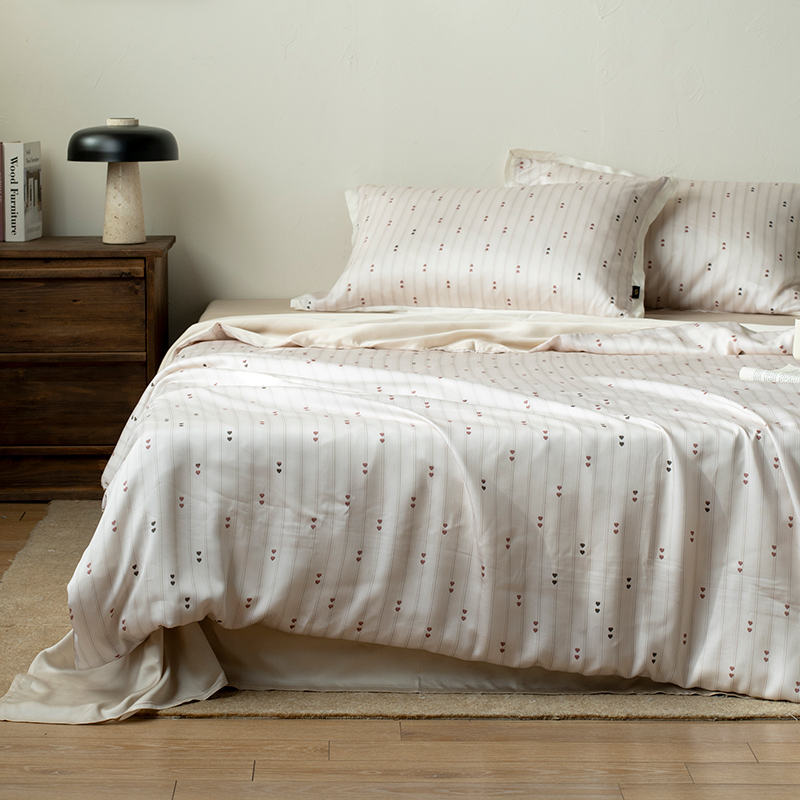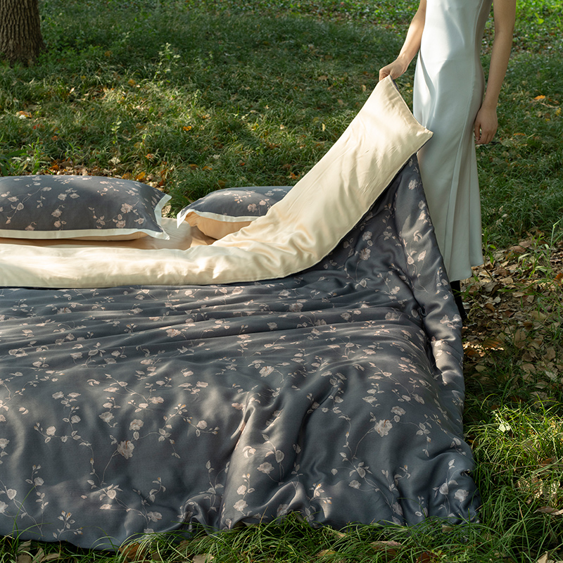 1、100%莱赛尔纤维,源自自然的纯净纤维,触感丝滑如绸,却又比丝绸更加透气吸湿。每一寸面料,都经过精心挑选与织造,只为给你最细腻的呵护。
