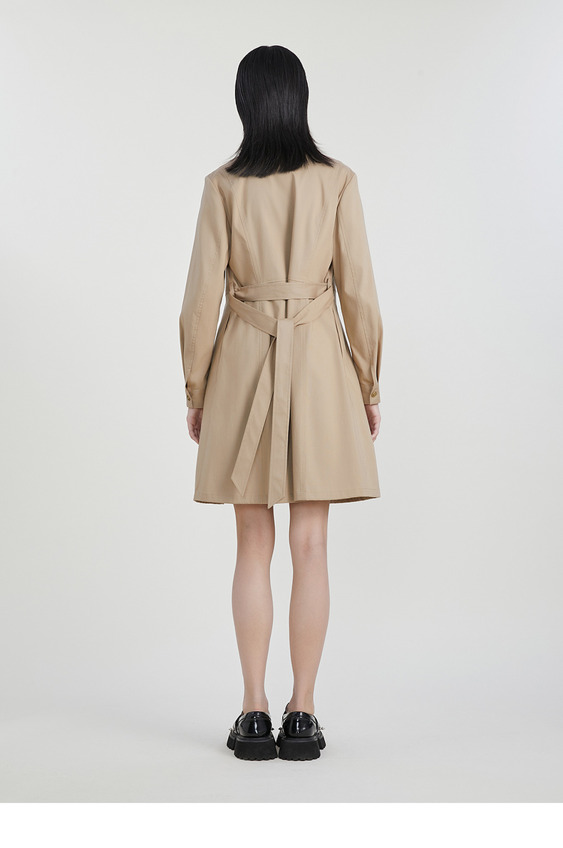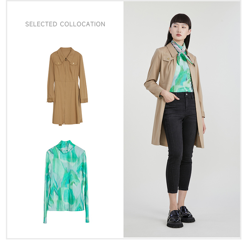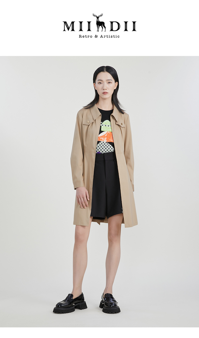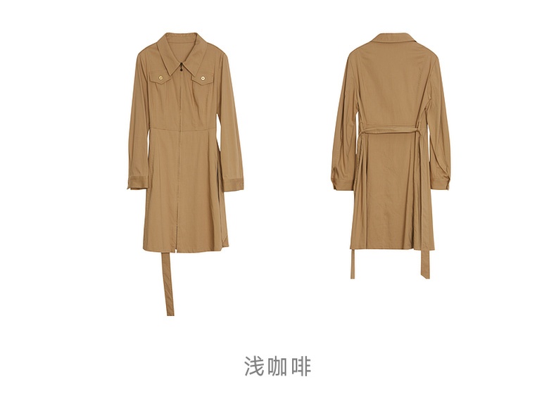 谜底23春季新款简约通勤净色收腰显瘦中长款连衣裙长袖231ML0155