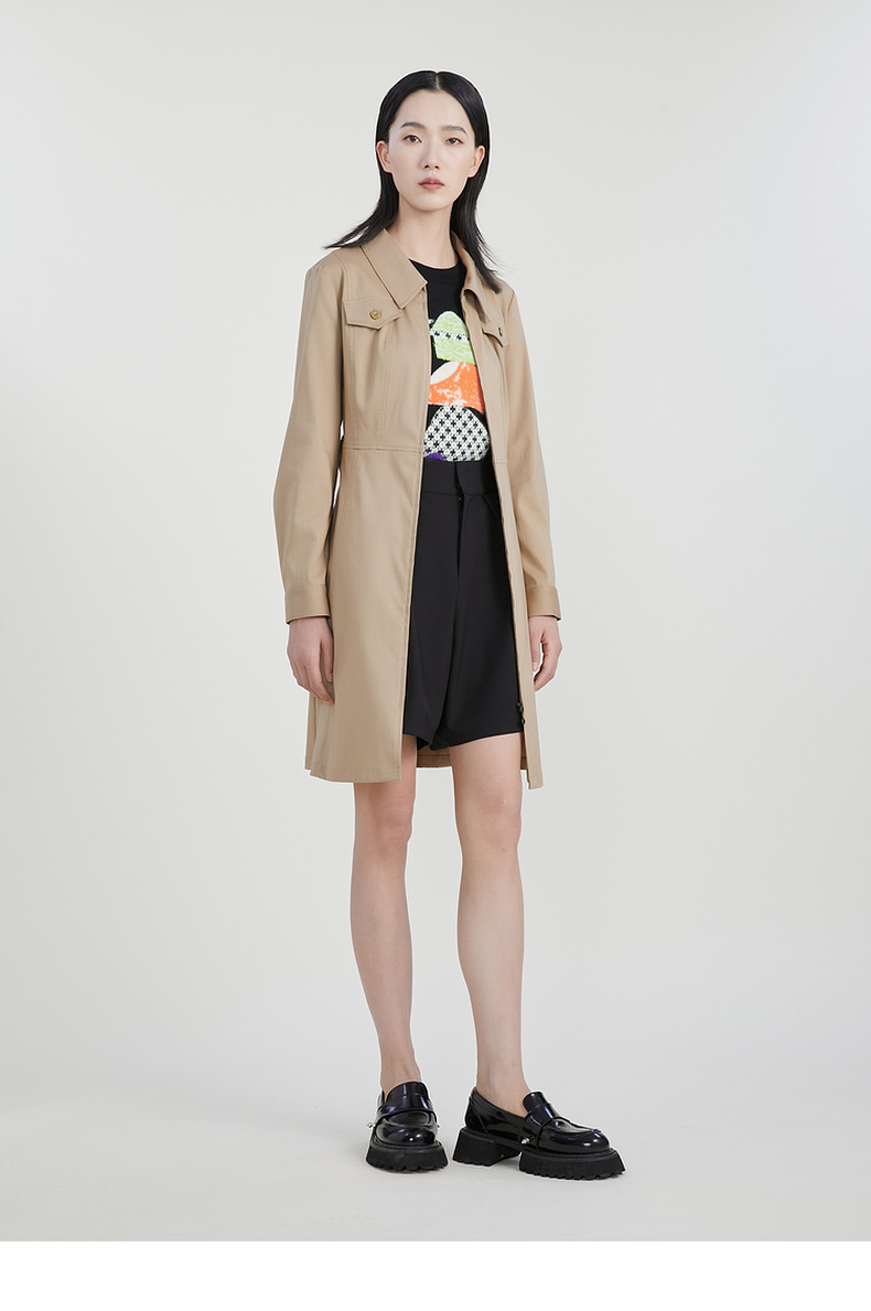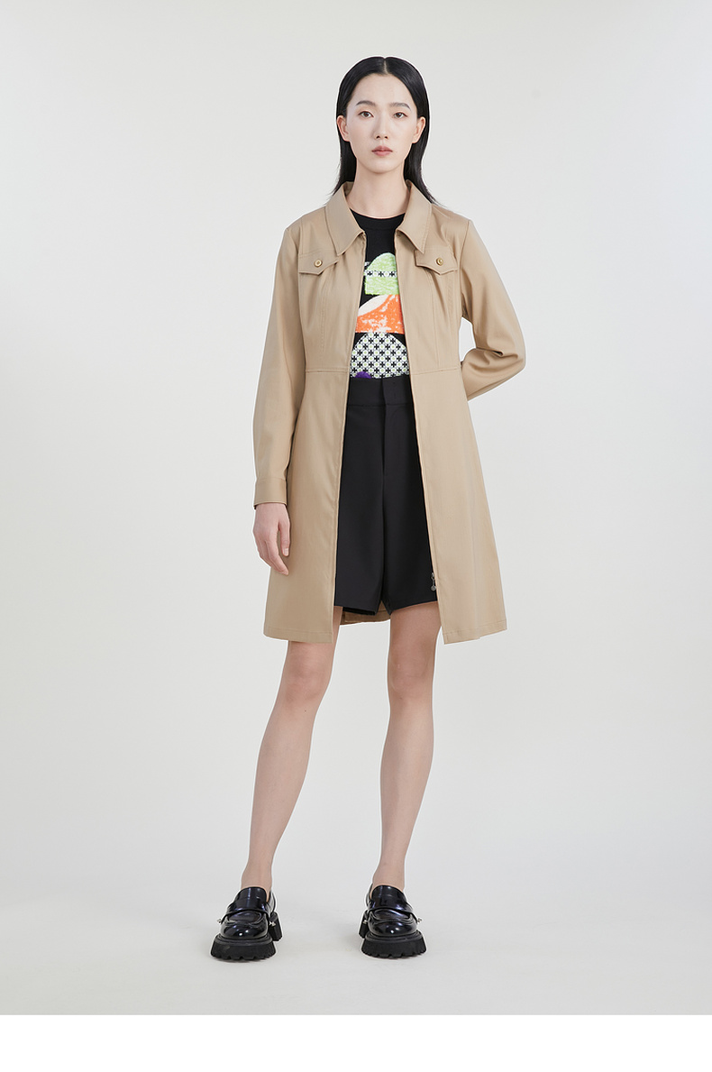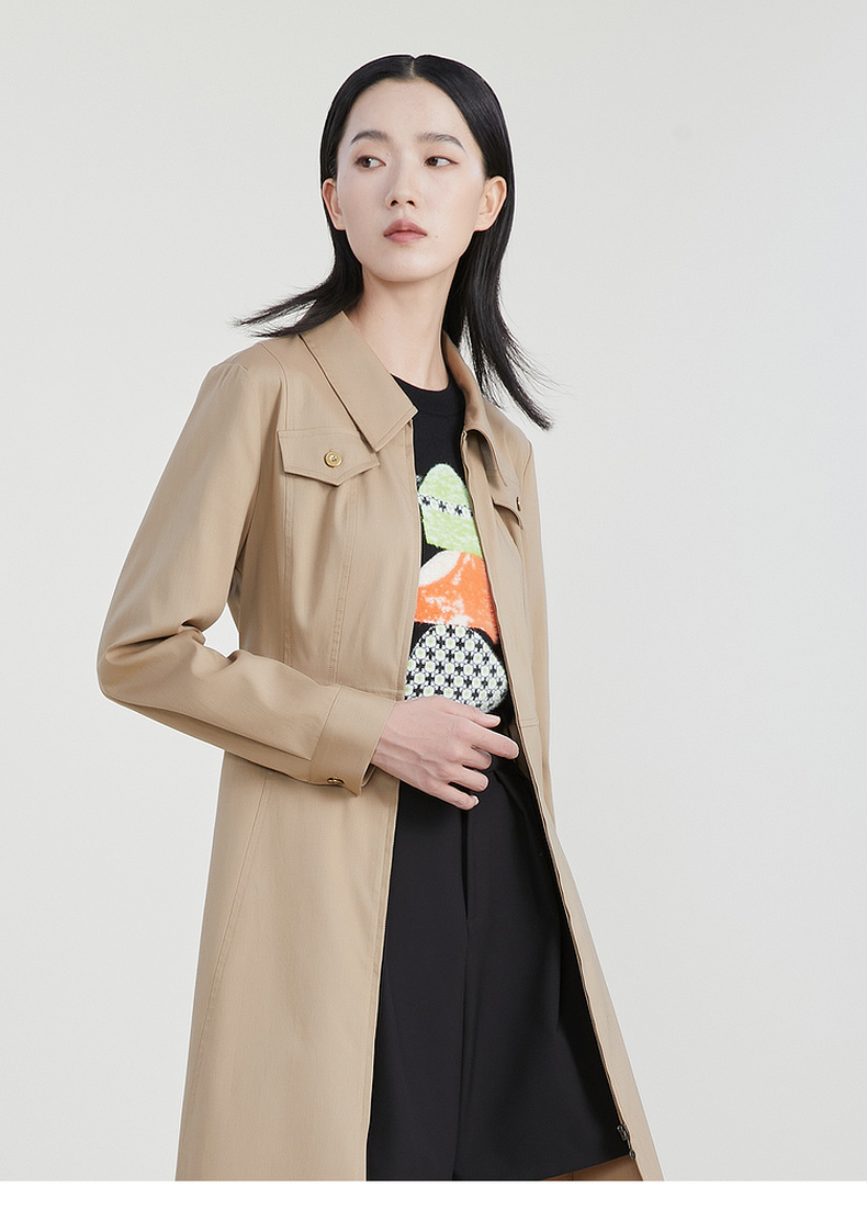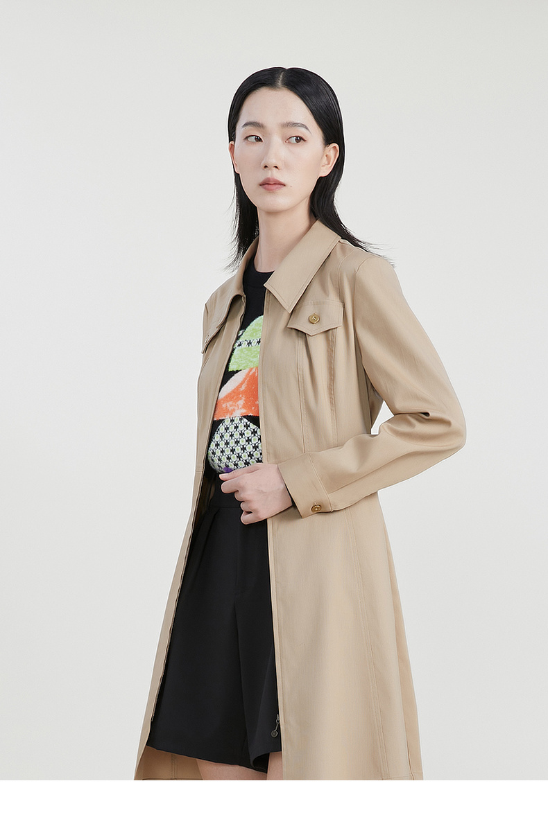 谜底23春季新款简约通勤净色收腰显瘦中长款连衣裙长袖231ML0155