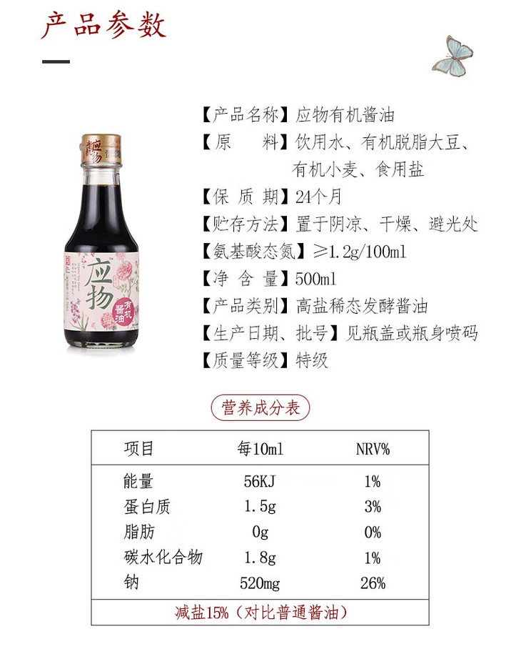 应物有机调味品多规格组合 有机原料清晰配料表自然发酵支持自提