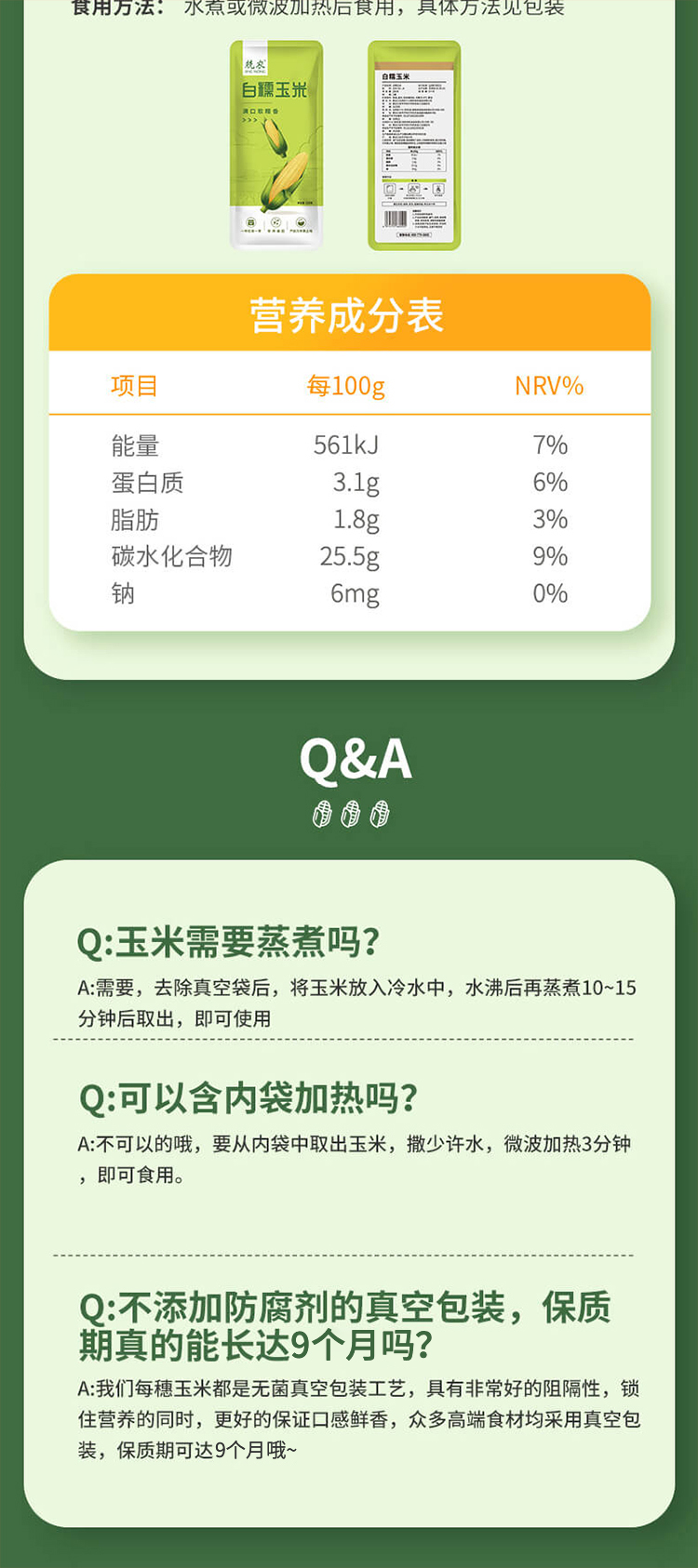 兢农白糯玉米200g*10 穗/盒