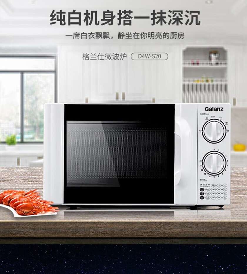 【小家电】格兰仕(Galanz)微波炉20升快捷家用六档火力旋钮易清洁小型迷你微波炉D4W-S20 HF