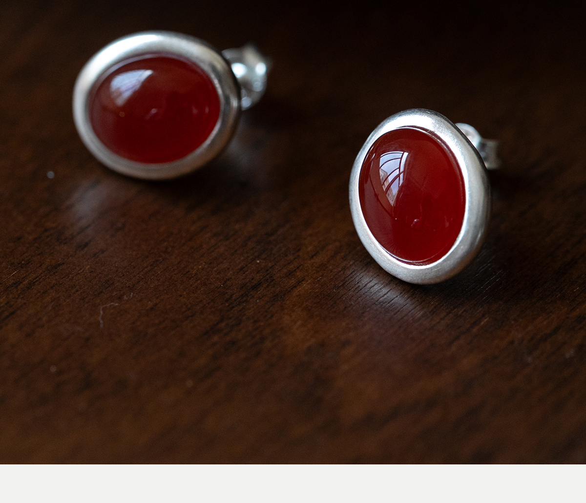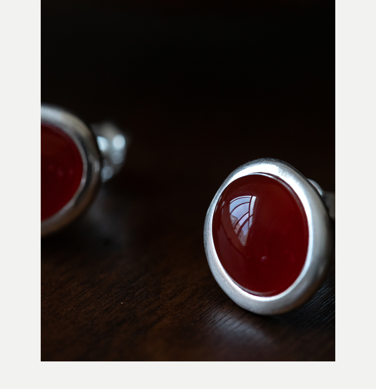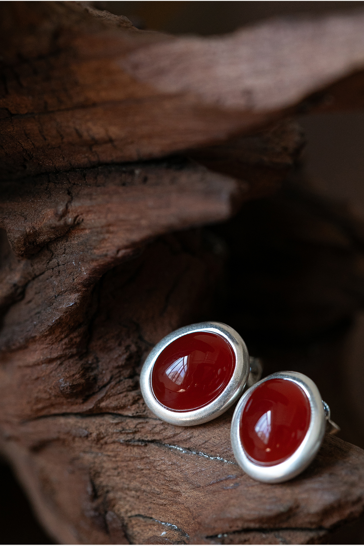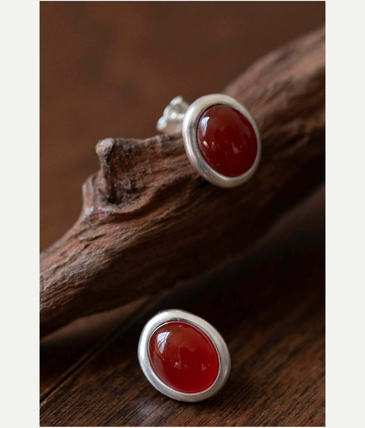 牧衣游 S925银天然红玛瑙耳环 芯莹【不支持会员折】