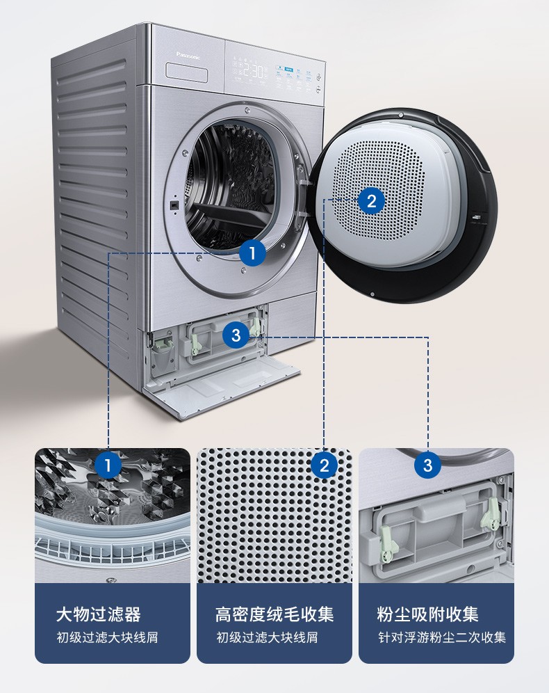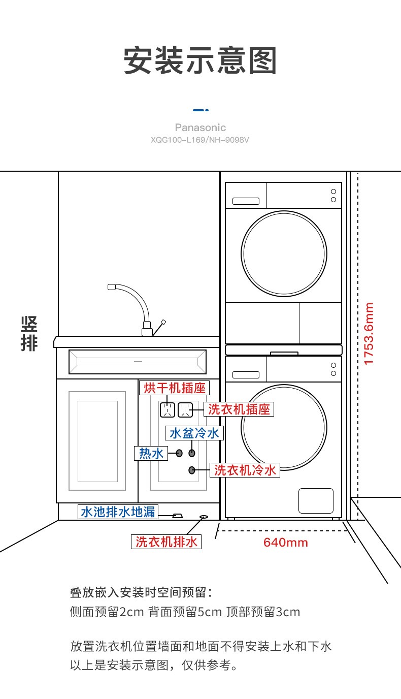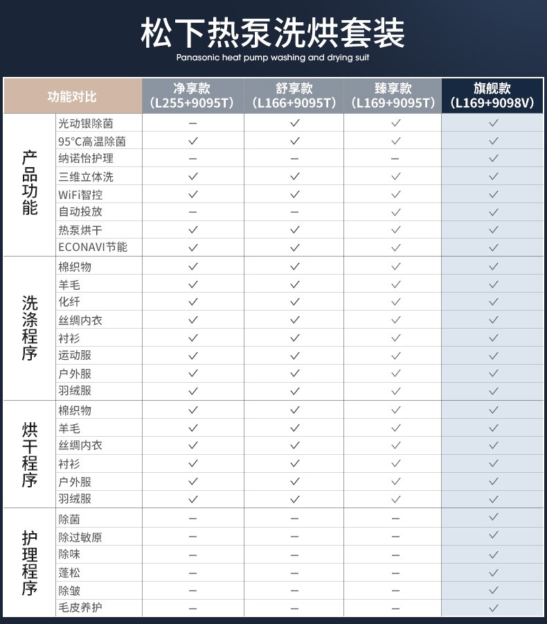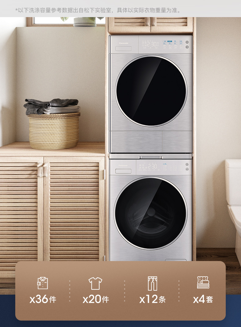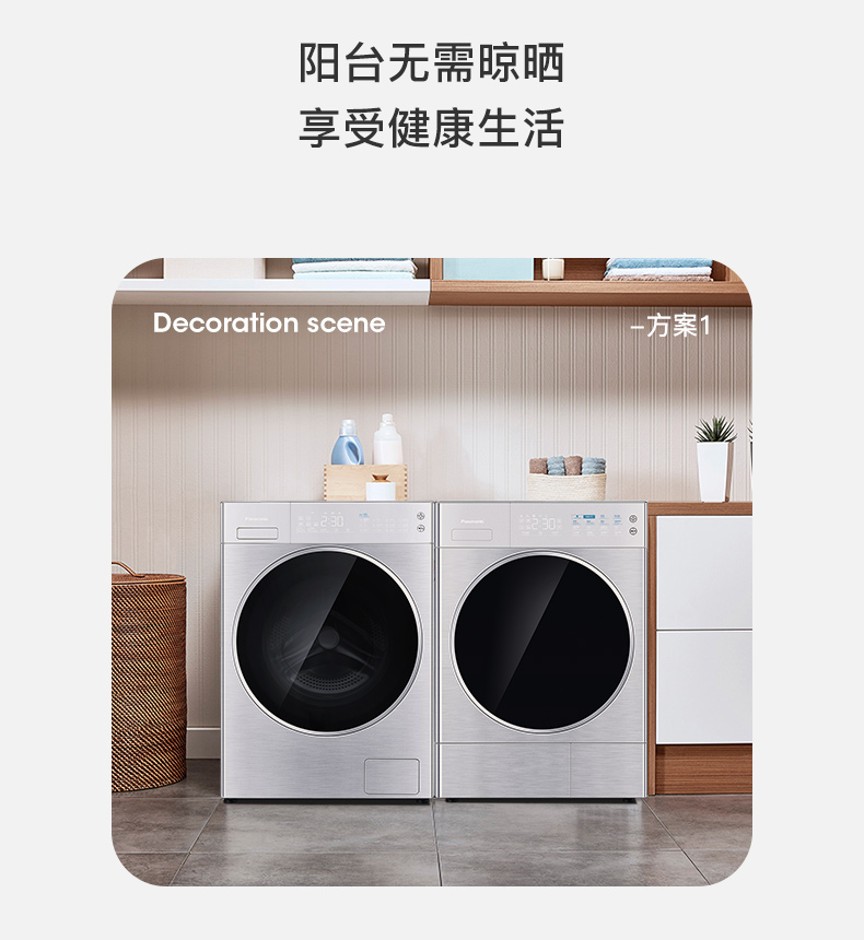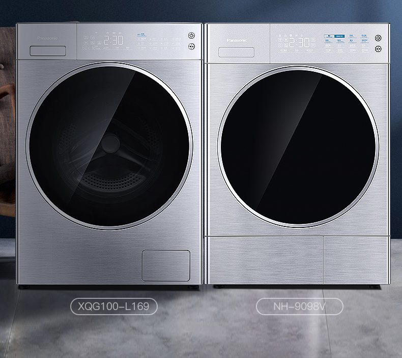 松下(Panasonic)L169+9098P/V洗烘套装滚筒洗衣机10公斤烘干机9公斤热泵烘护机 XQG100-L165+NH-9098V/P 纳诺怡护理