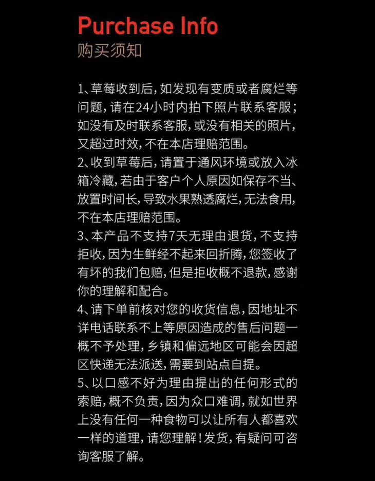 因生鲜水果,下单后不支持无理由退货及拒收.