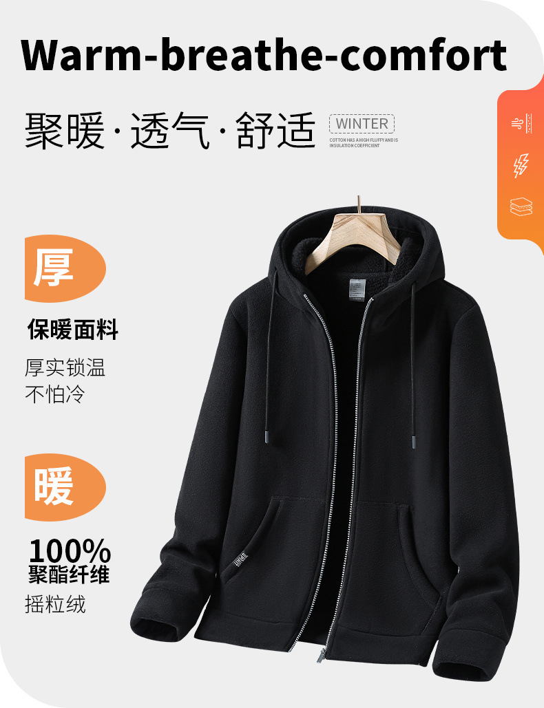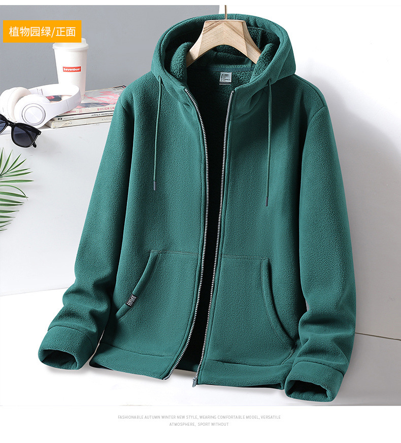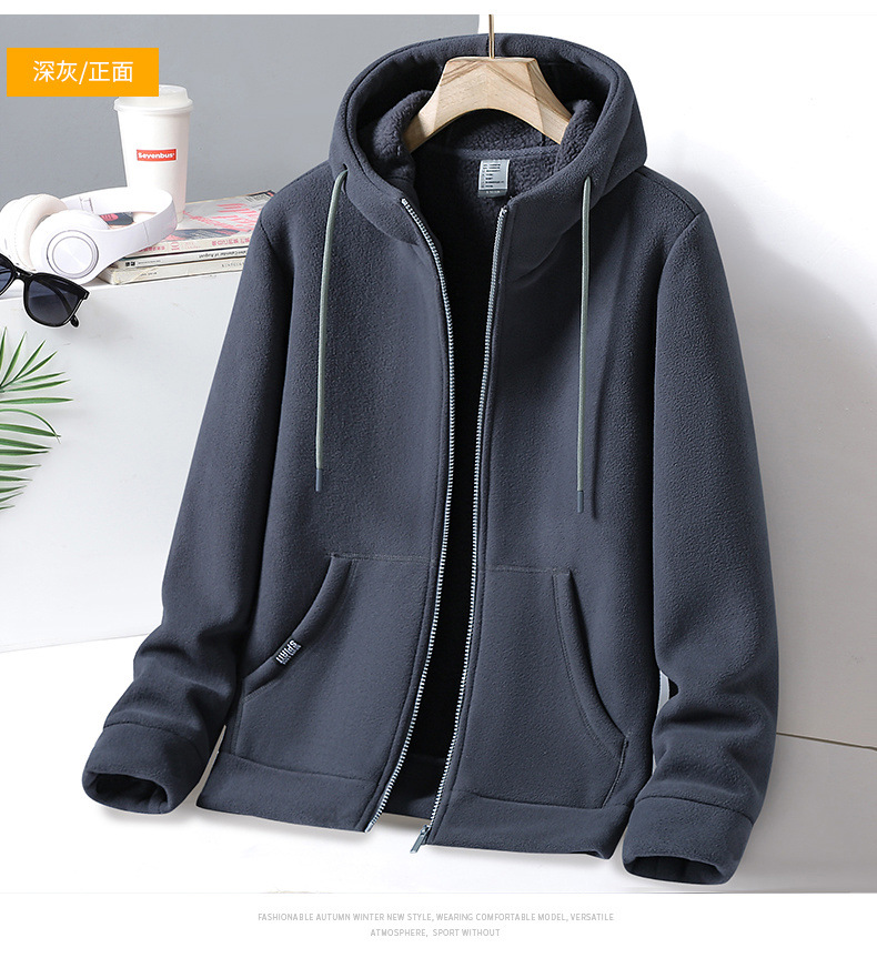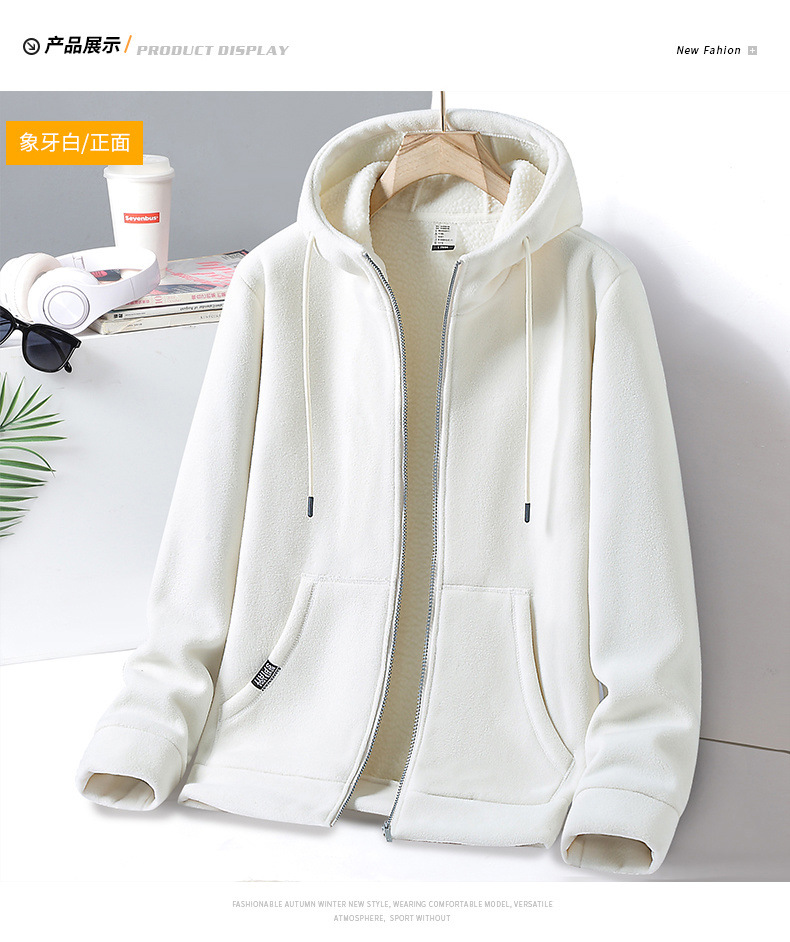 抓绒衣情侣连帽外套男女同款冬季新款男士韩版开衫青年运动休闲保暖潮