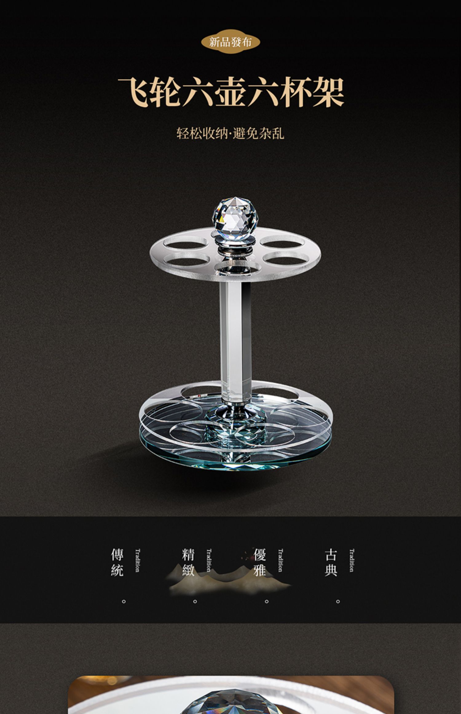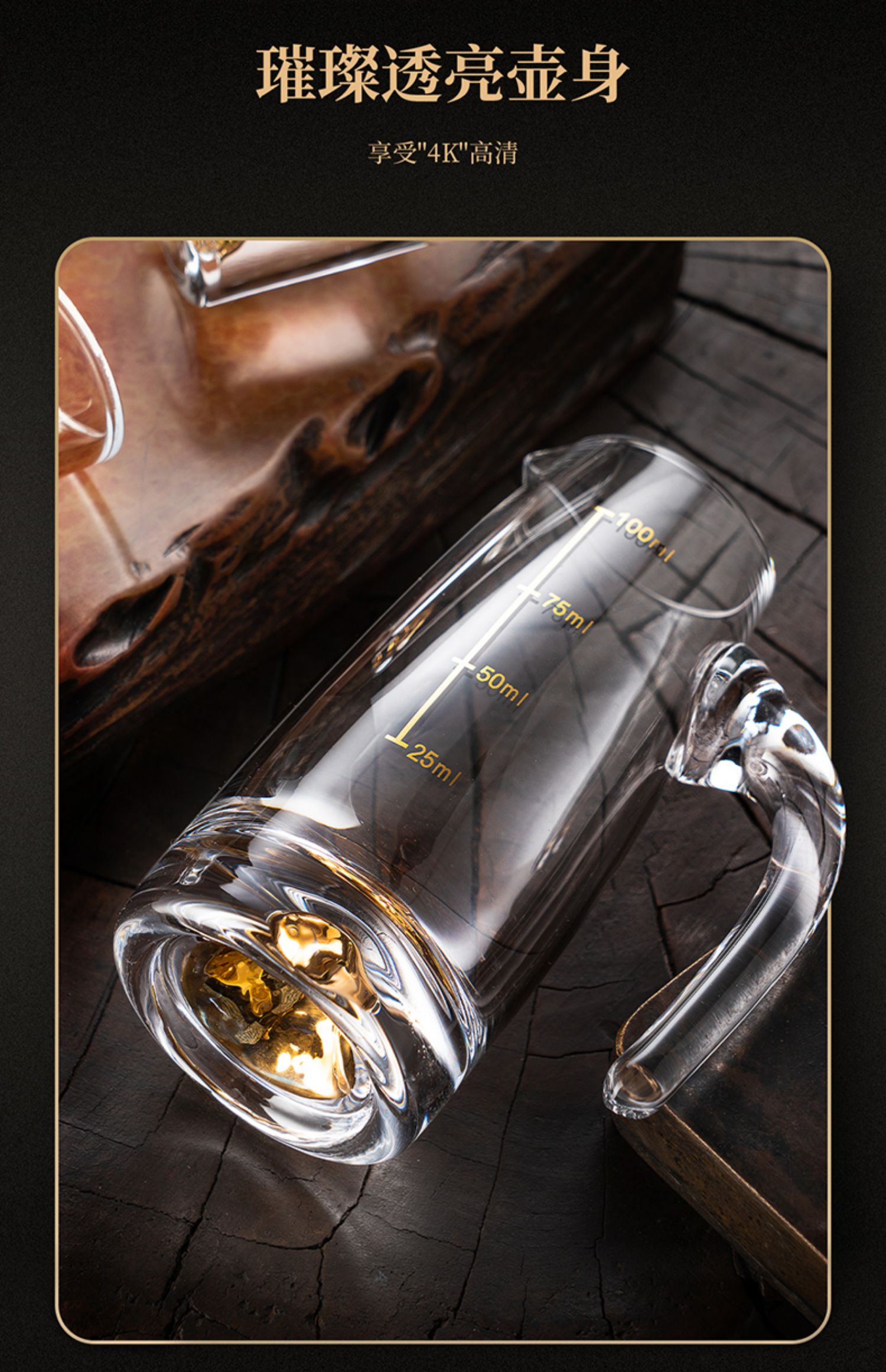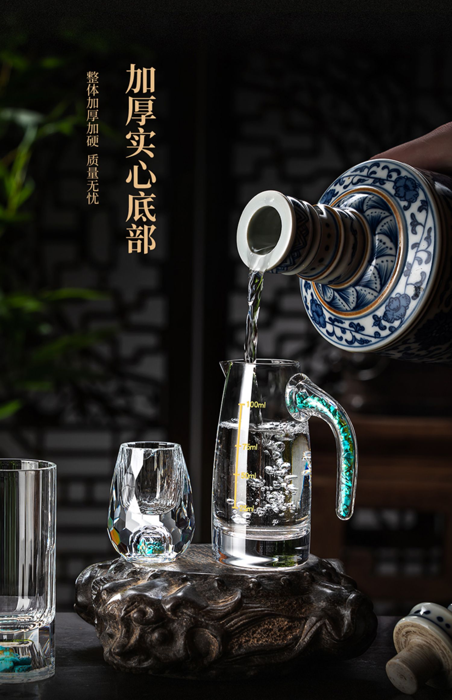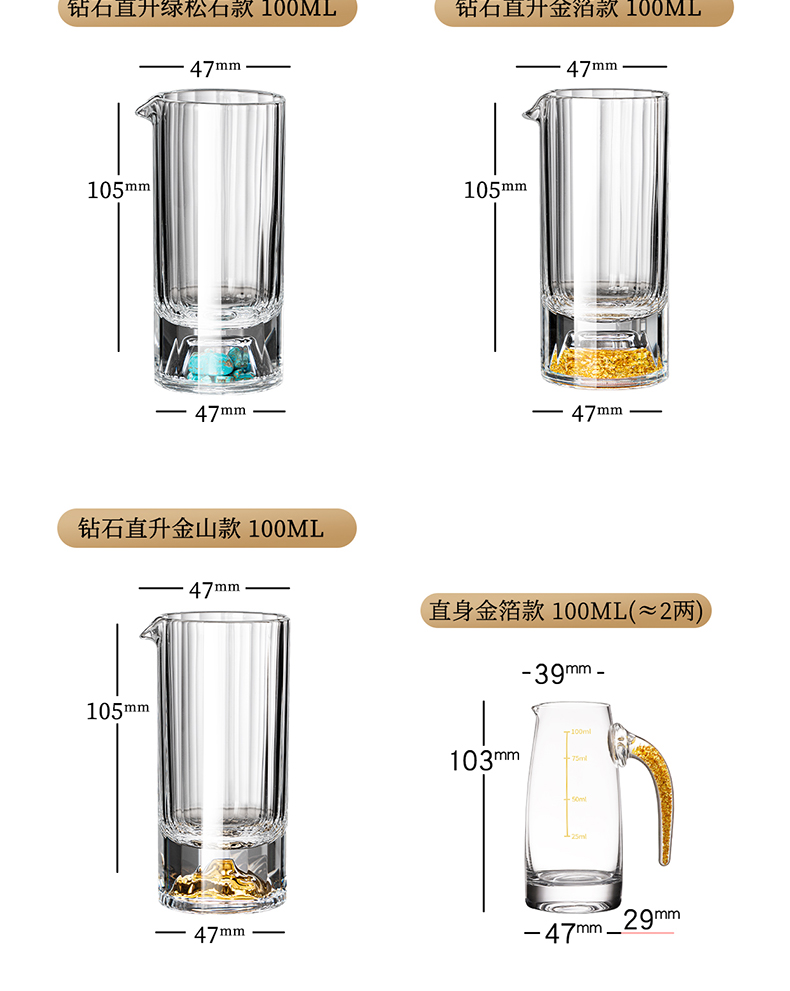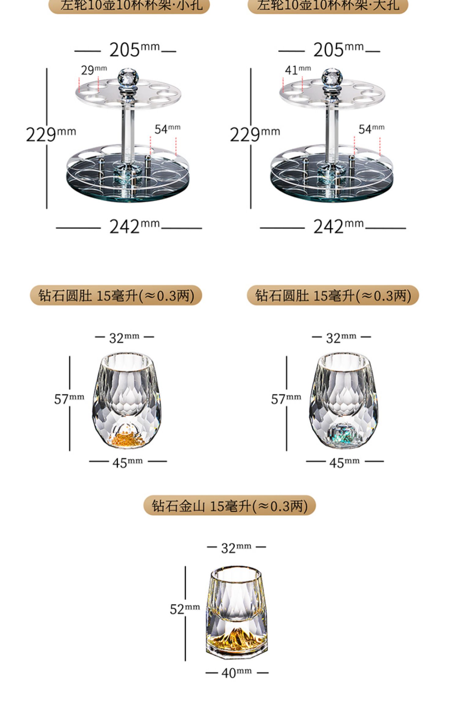 【特惠6折,仅1套,无货退款】玻璃白酒杯分酒器家用小酒杯一口杯高档酒具礼盒皮箱装送人乔迁生活本色金箔白酒具6杯6壶套装(带旋转杯架)