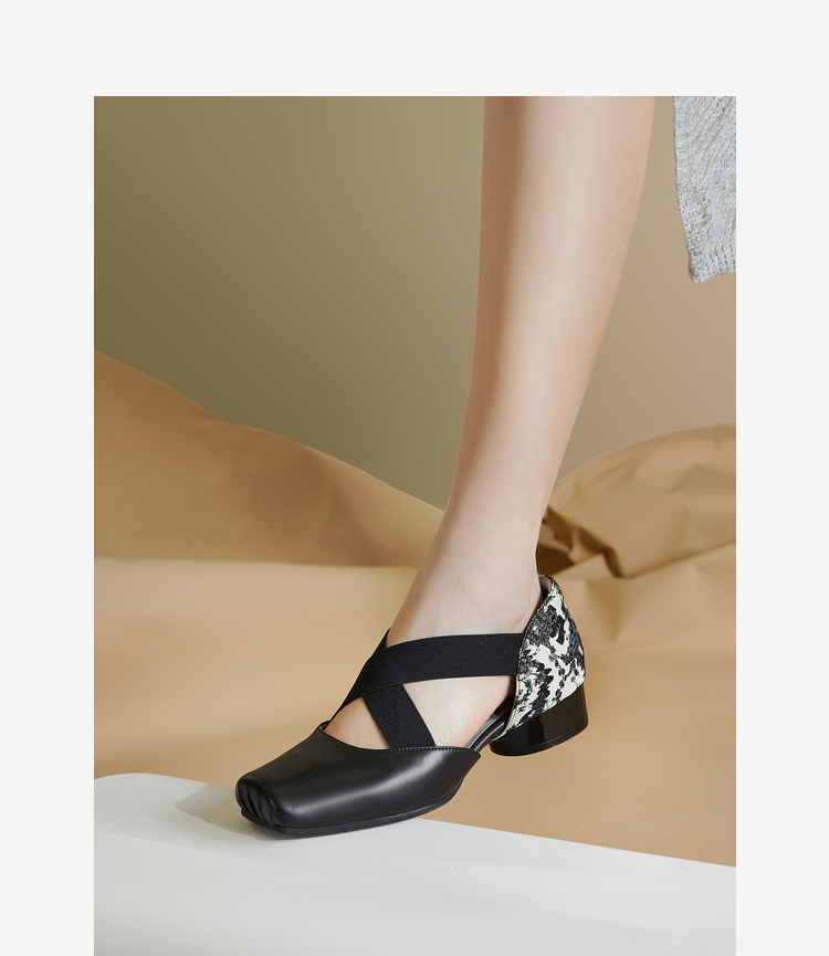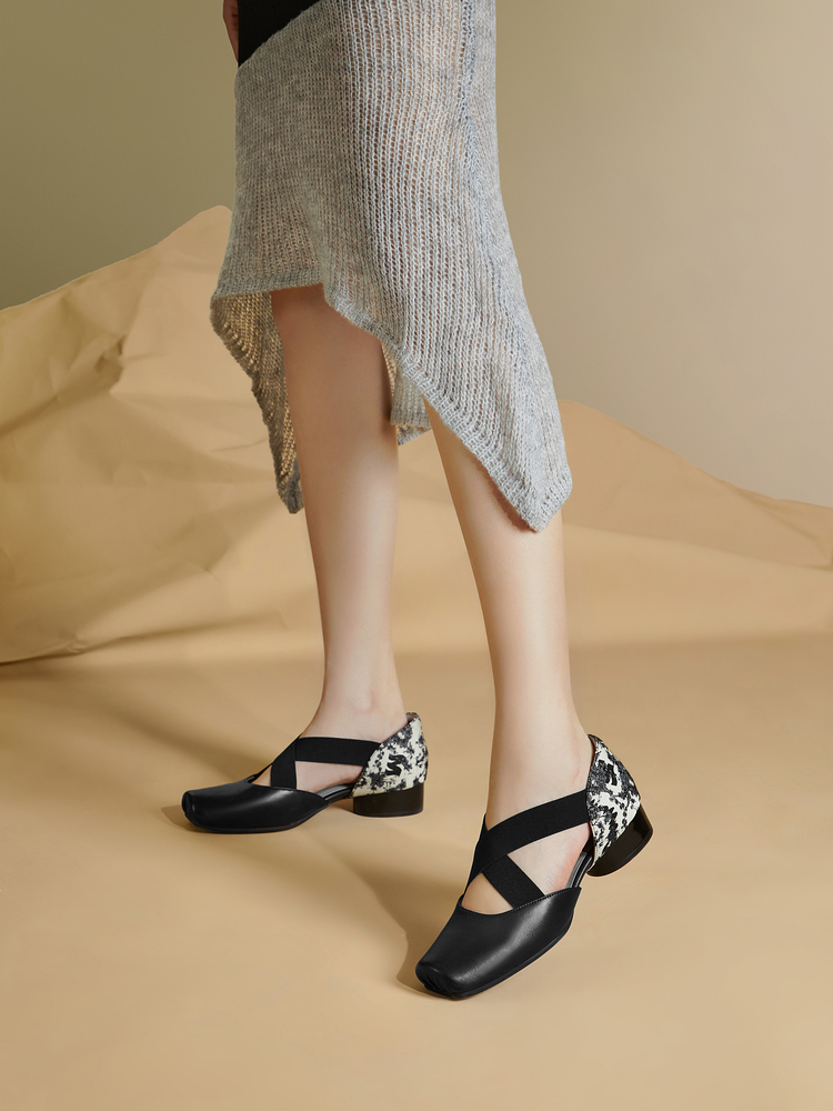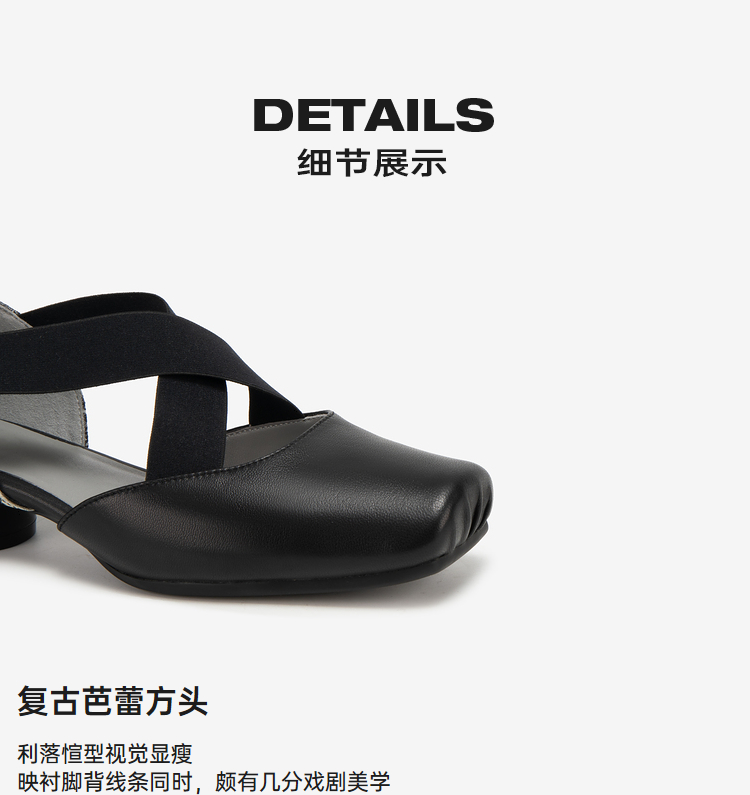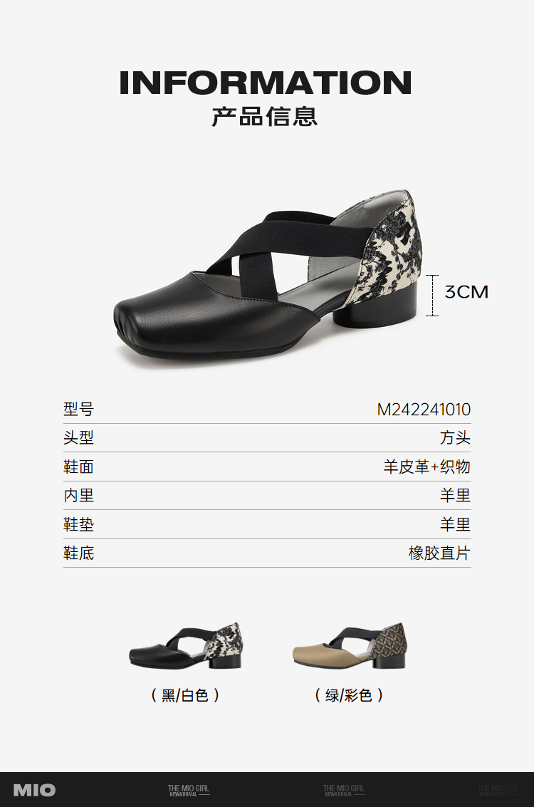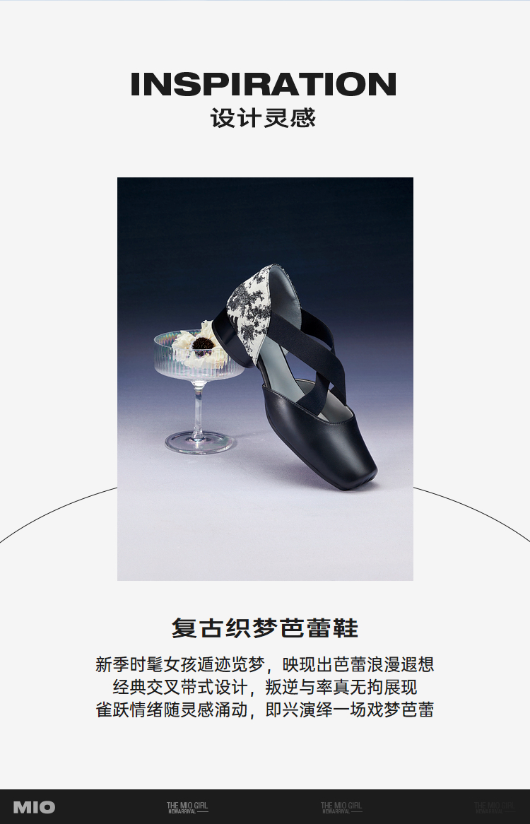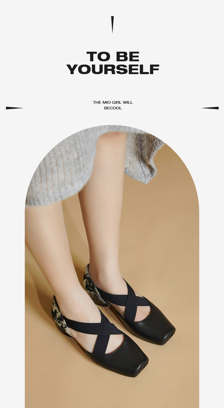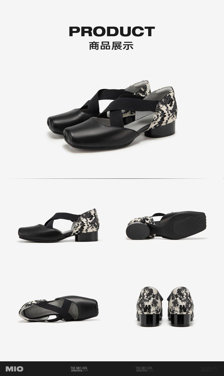 MIO米奥夏季方头低跟单鞋交叉带式国风复古芭蕾鞋女鞋M242241010