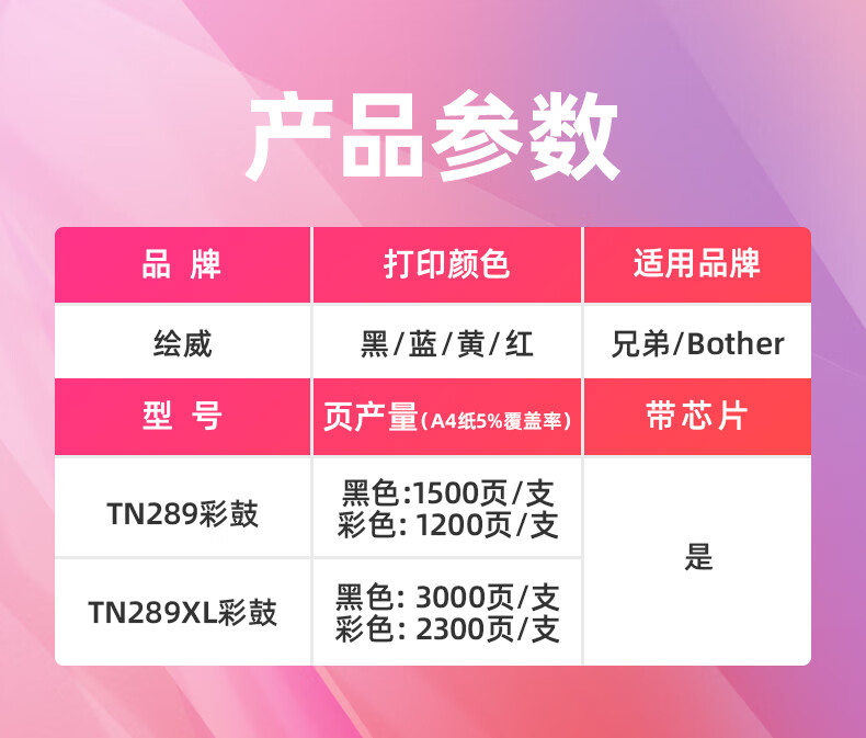 绘威TN289粉盒 适用兄弟3528粉盒 MFC-L3768cdw打印机墨盒 3228cdw 3288cdw DCP-L3568cdw硒鼓 带芯片大容量 四色
