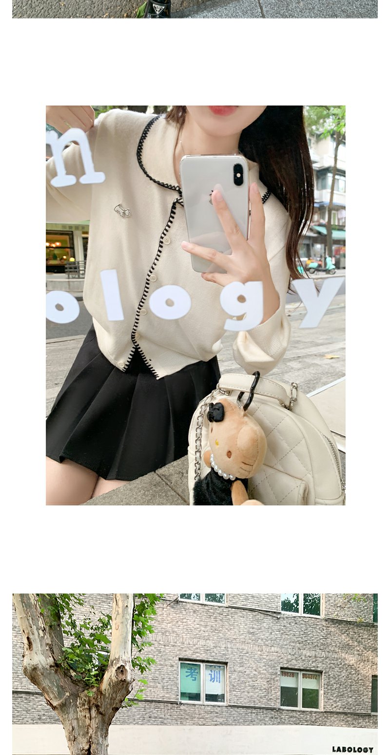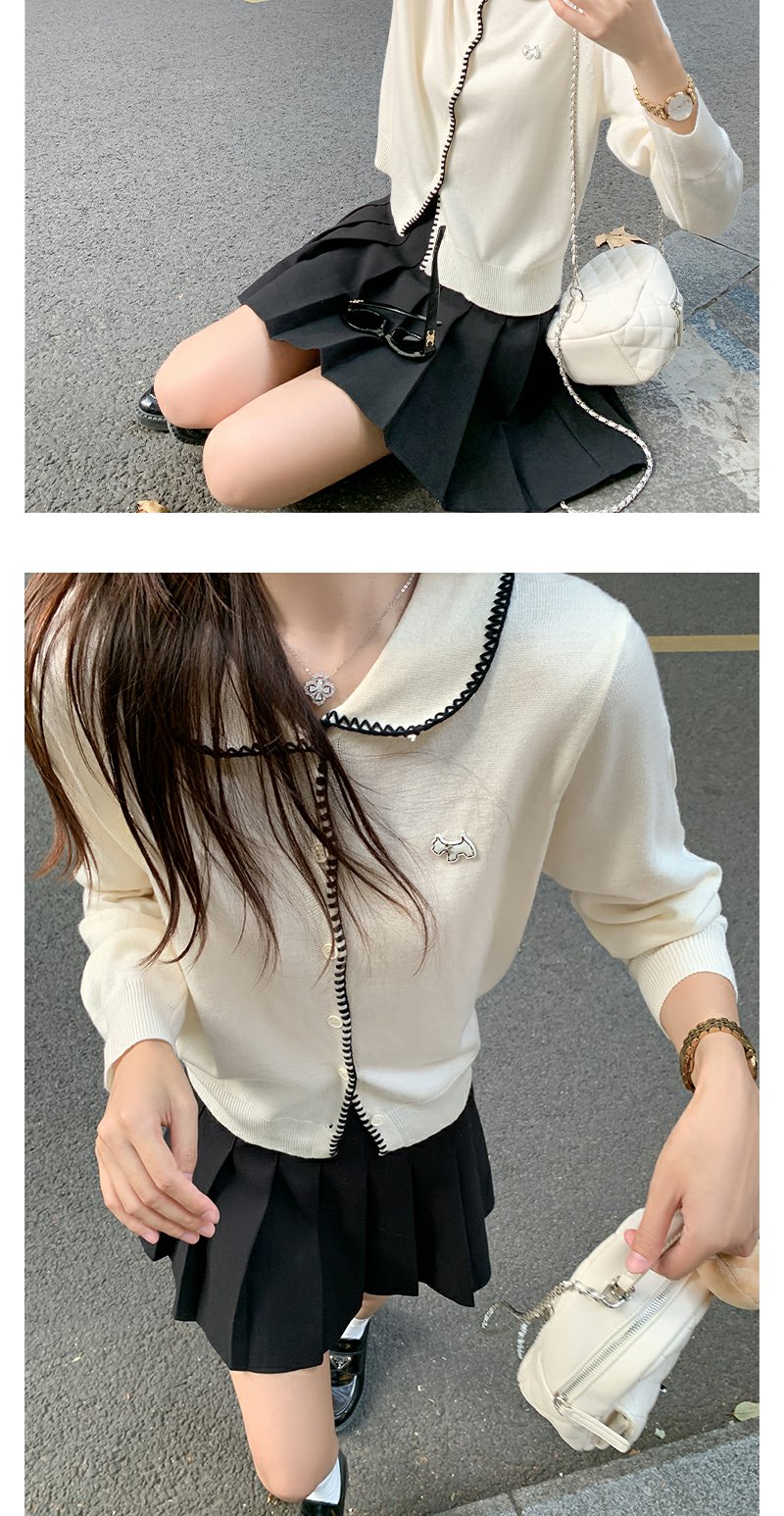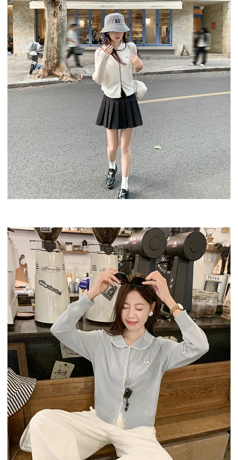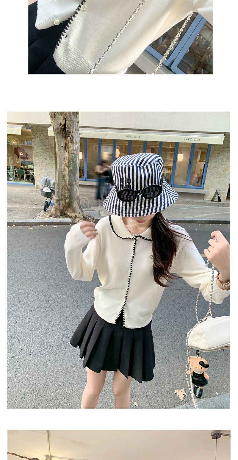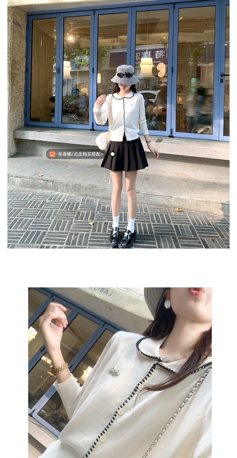【129元任选2件】撞色娃娃领单排扣长袖针织开衫