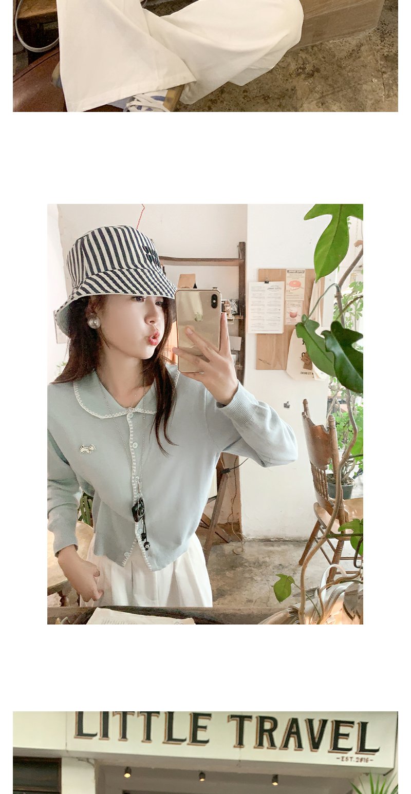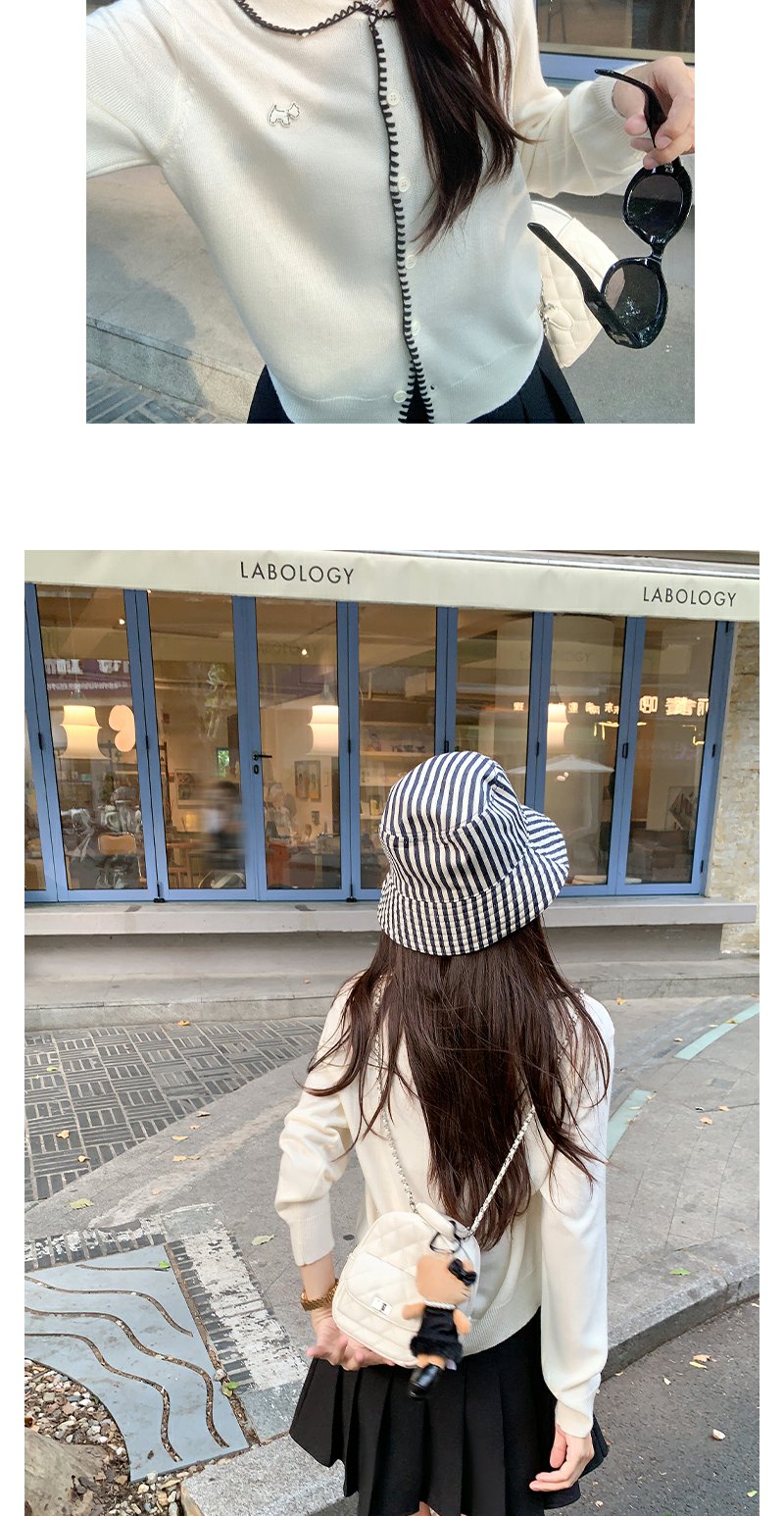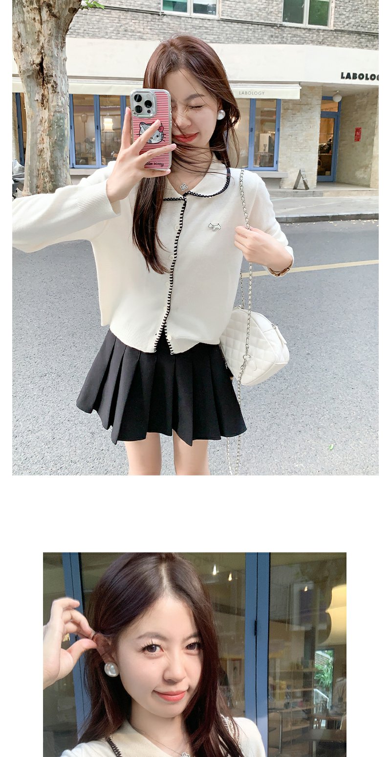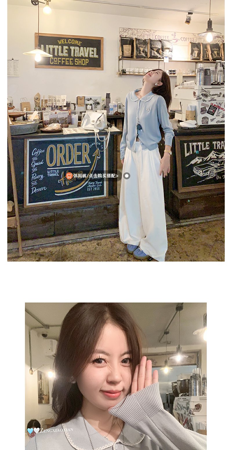 【129元任选2件】撞色娃娃领单排扣长袖针织开衫