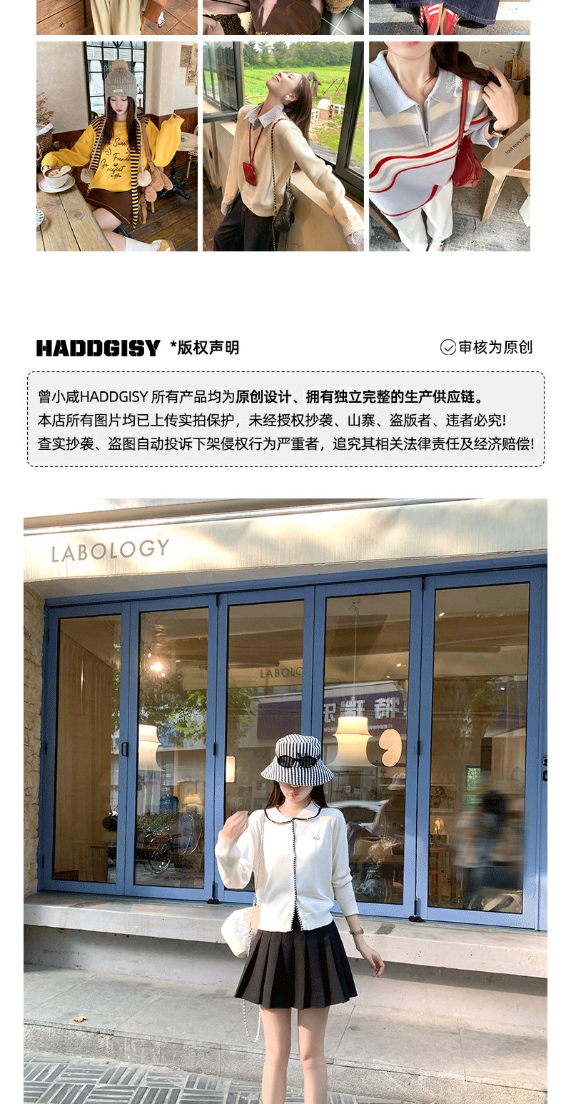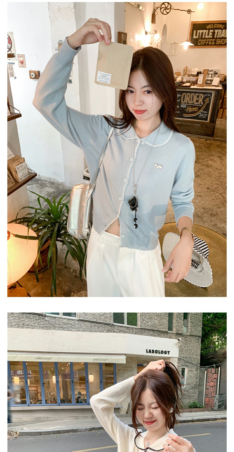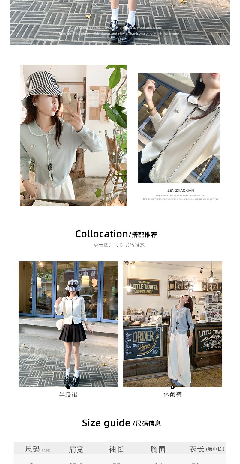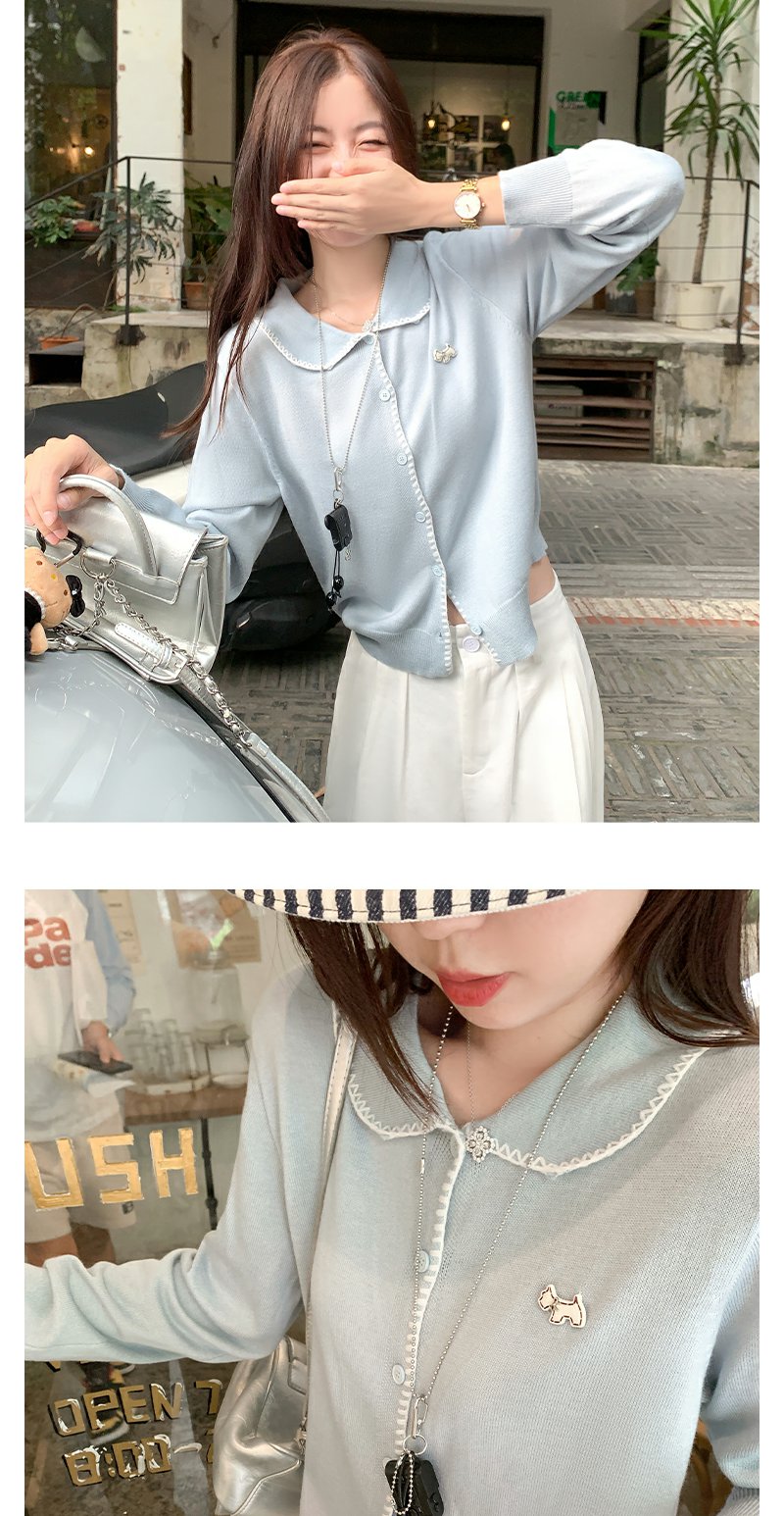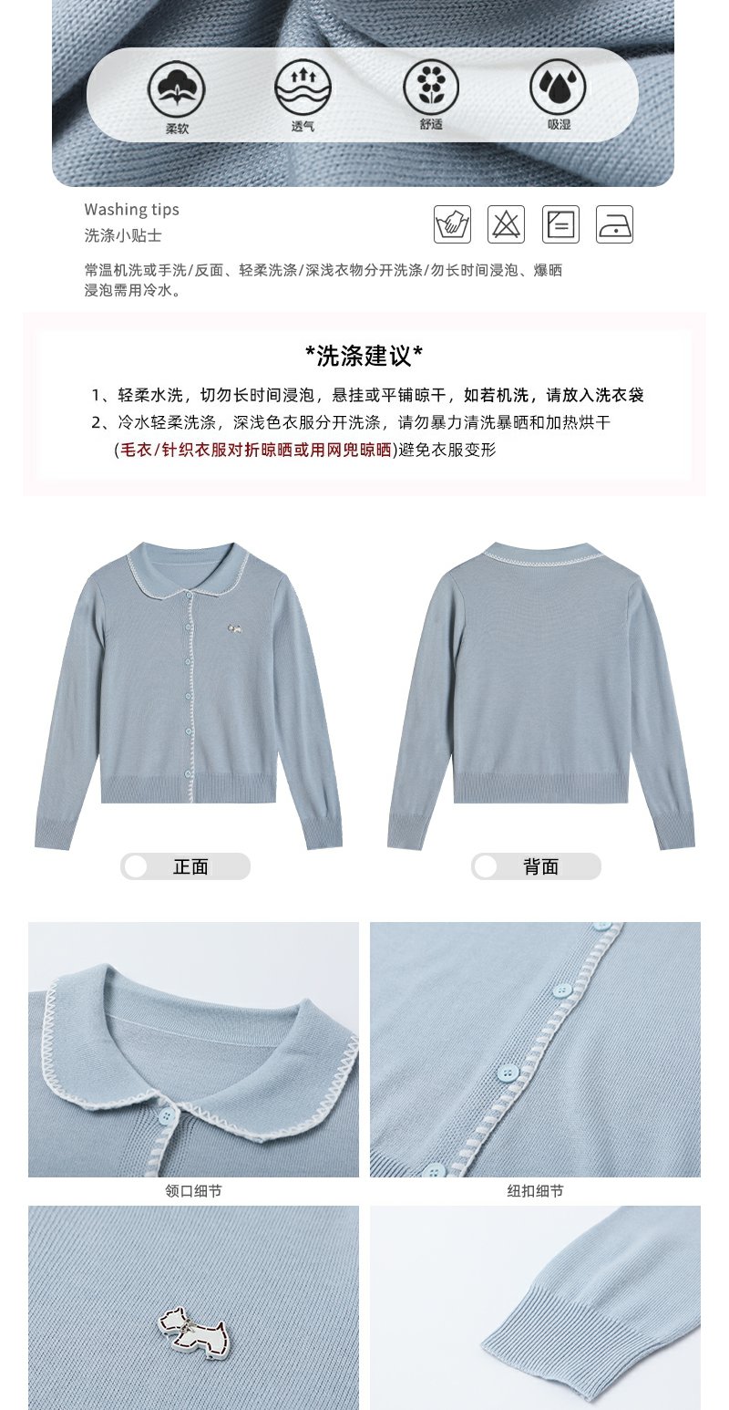 【129元任选2件】撞色娃娃领单排扣长袖针织开衫