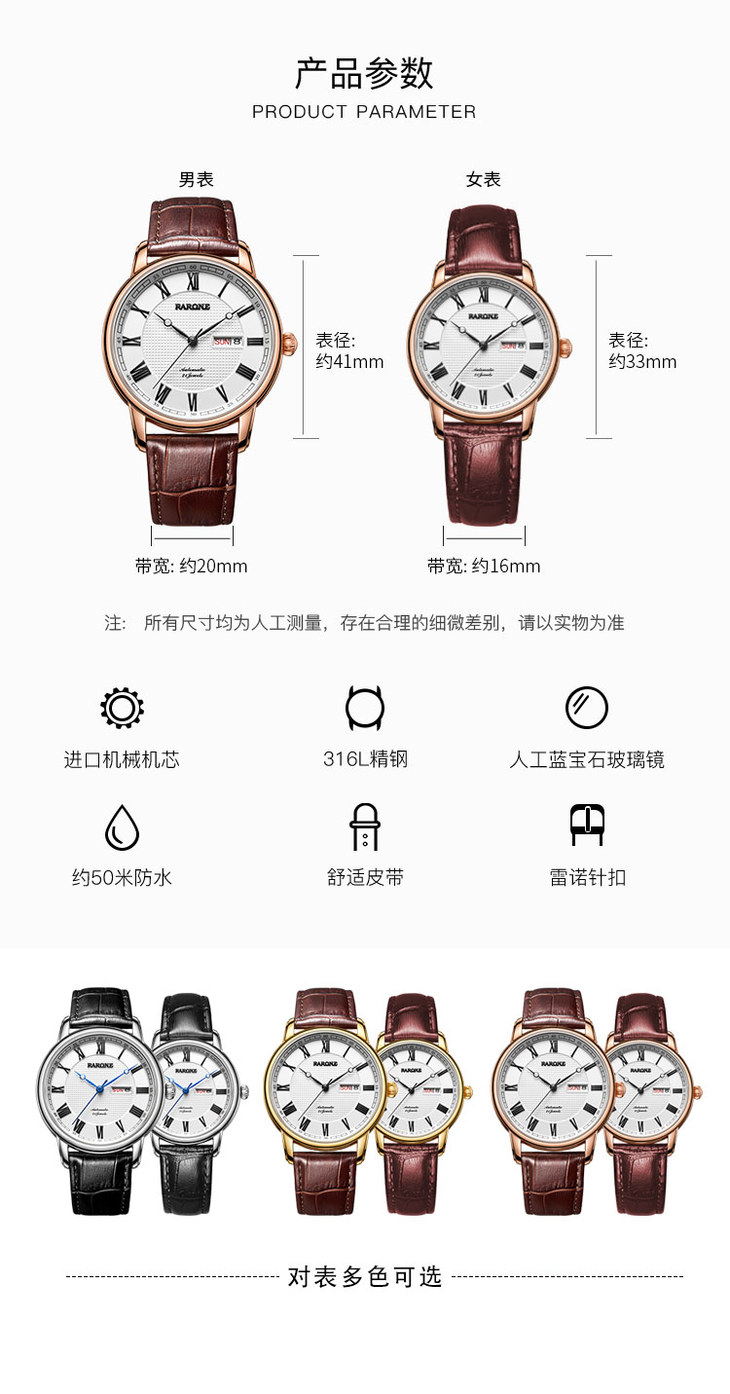 RARONE雷诺表高光系列机械对表884009