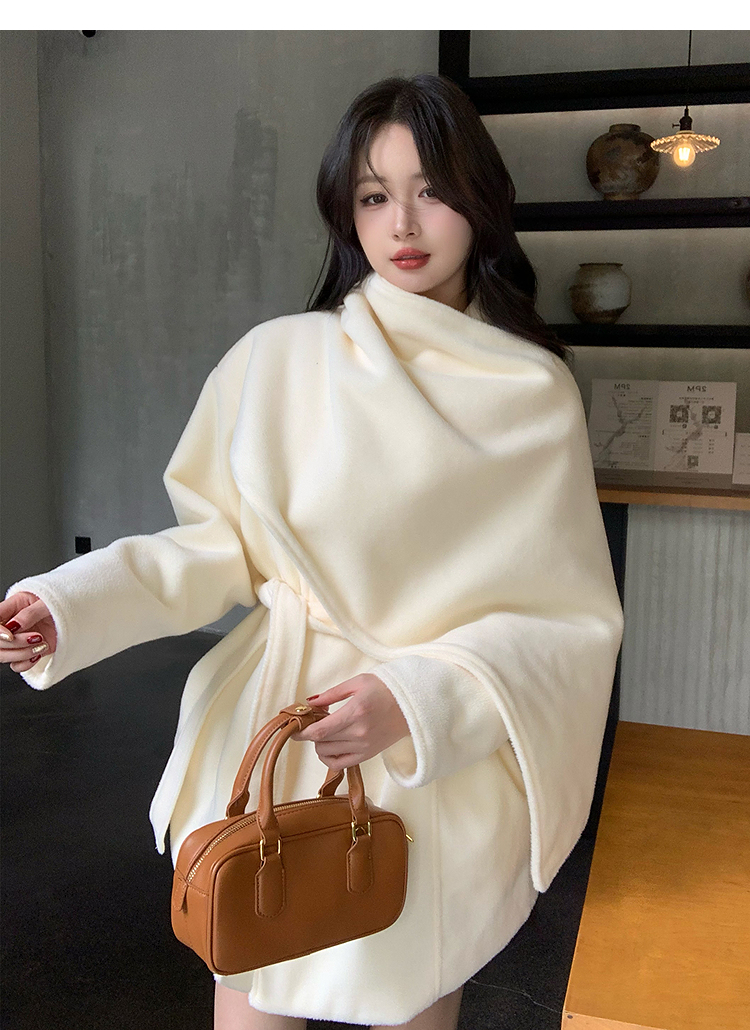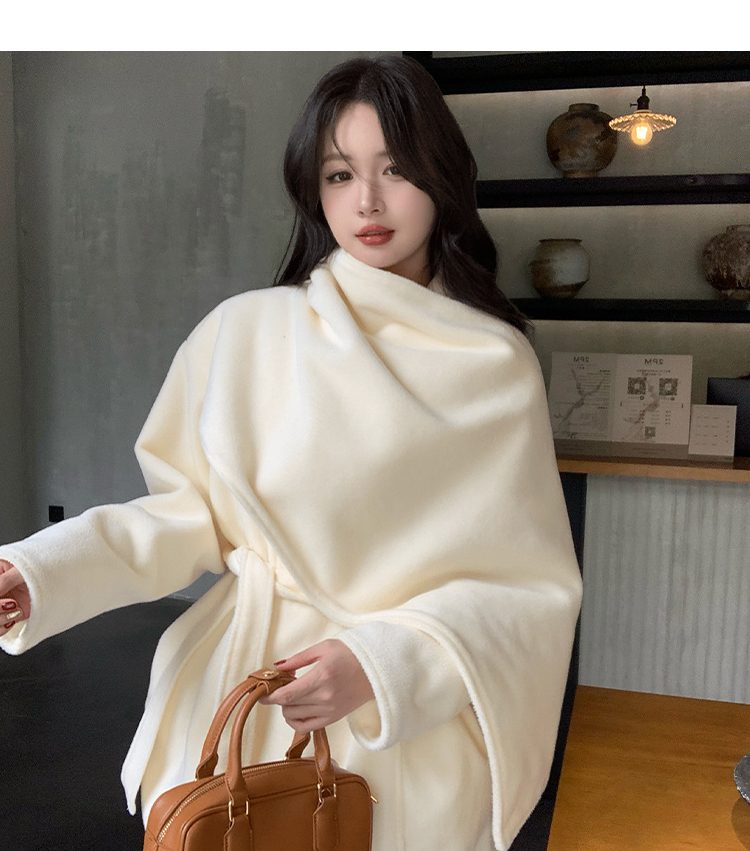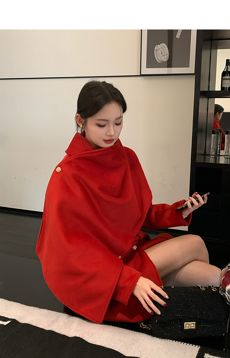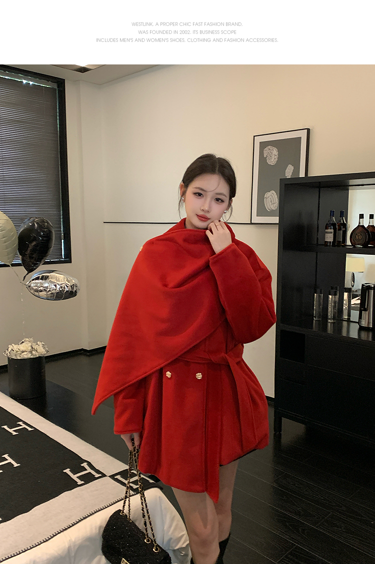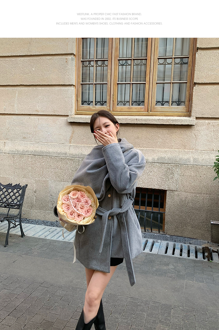西遇白色短款毛呢外套女冬季新款名媛千金风收腰双排扣大衣SS141379