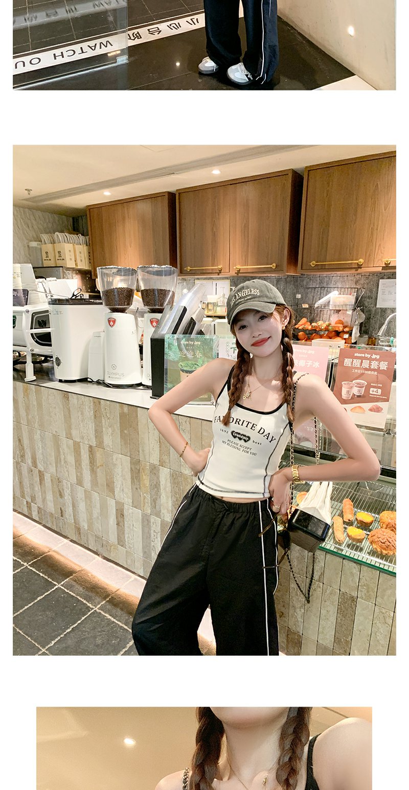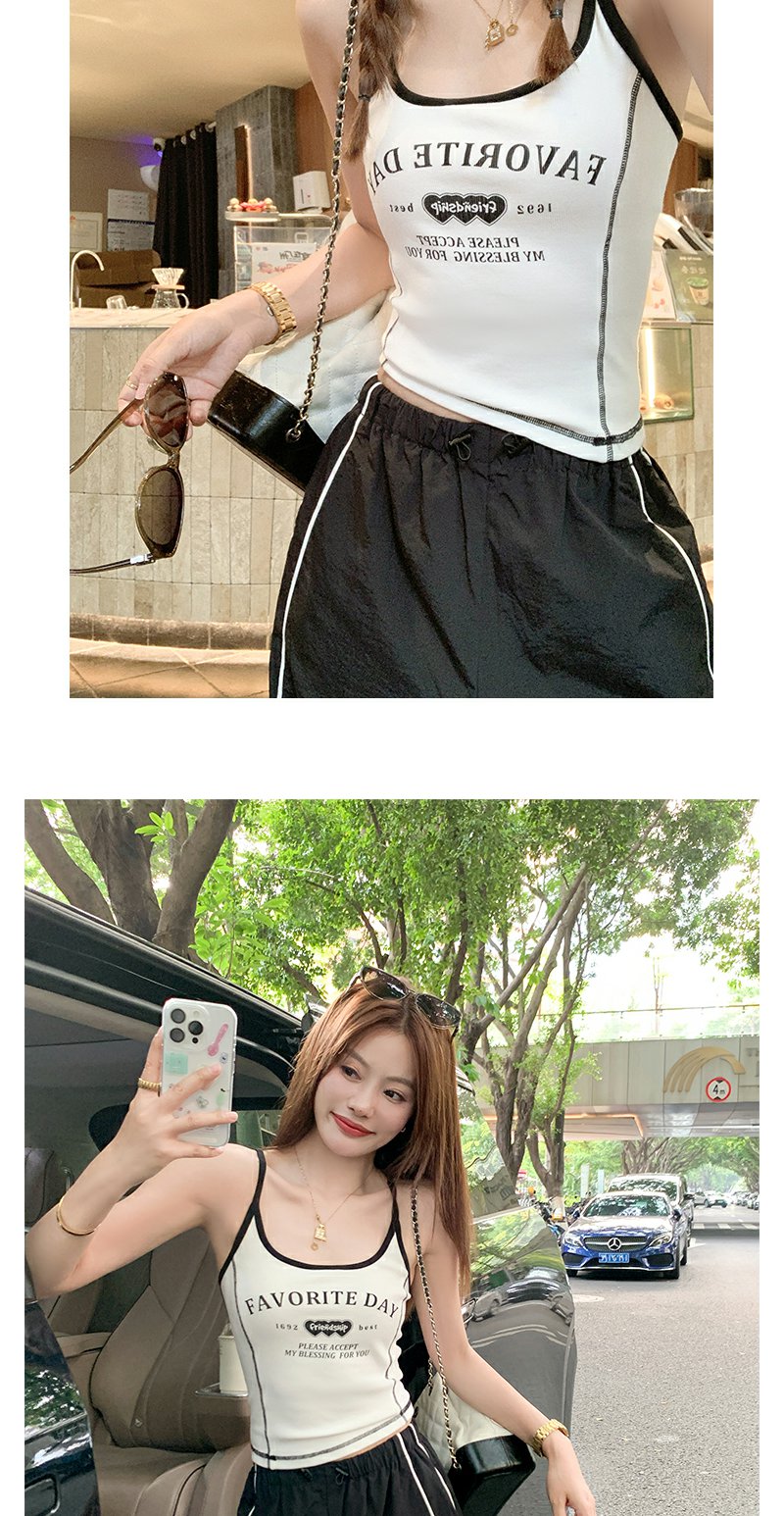 <曾小咸推荐>现货秒杀!微信超特价!美式辣妹风白底黑色字母吊带背心 日常79.99 立减40 秒杀39.99!
