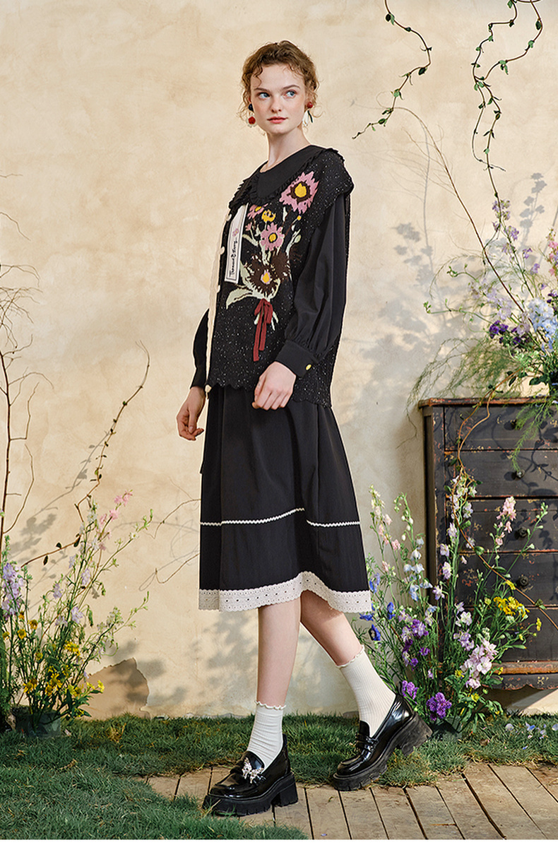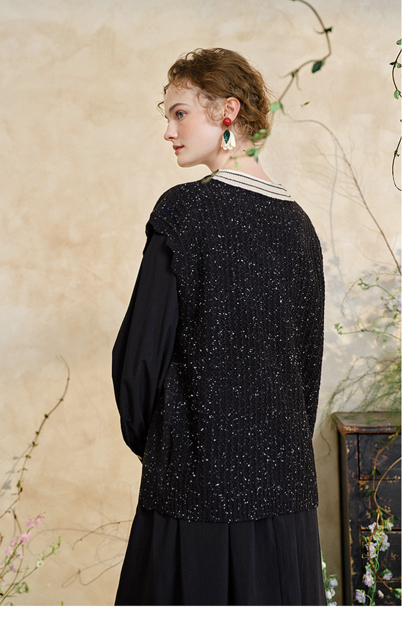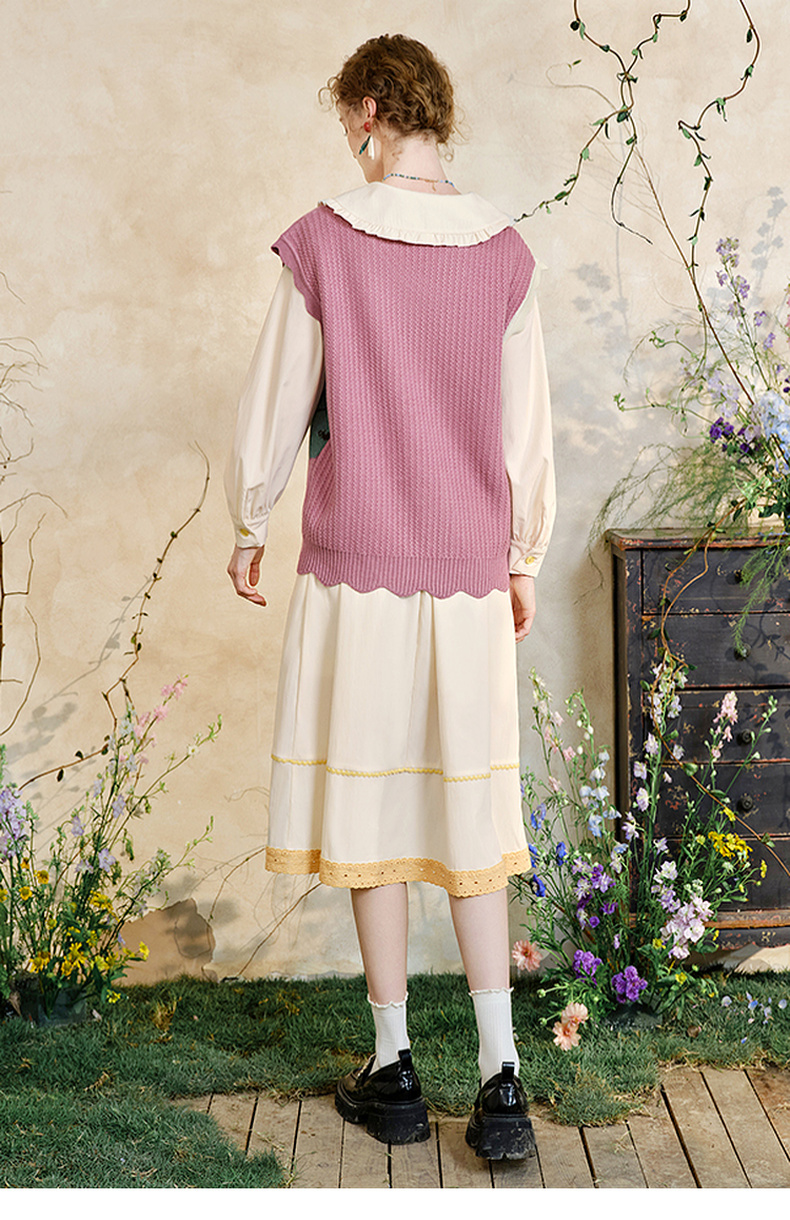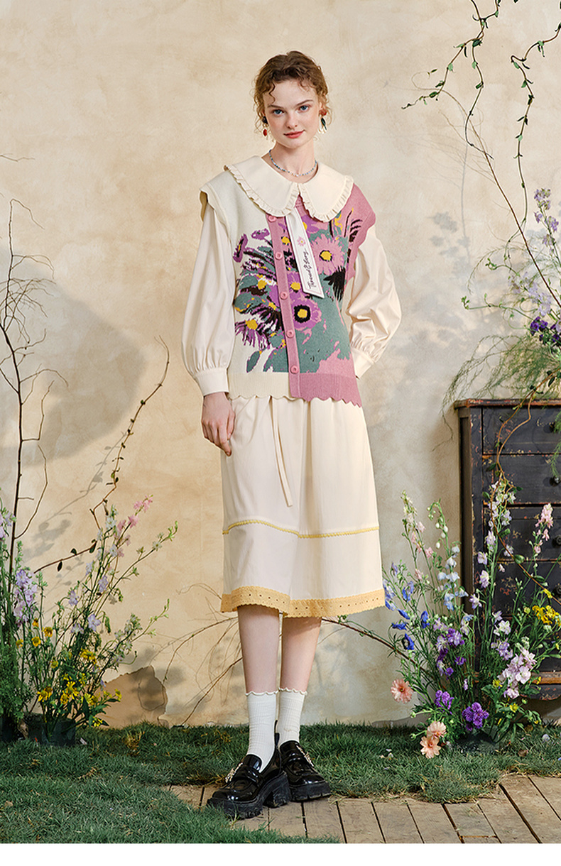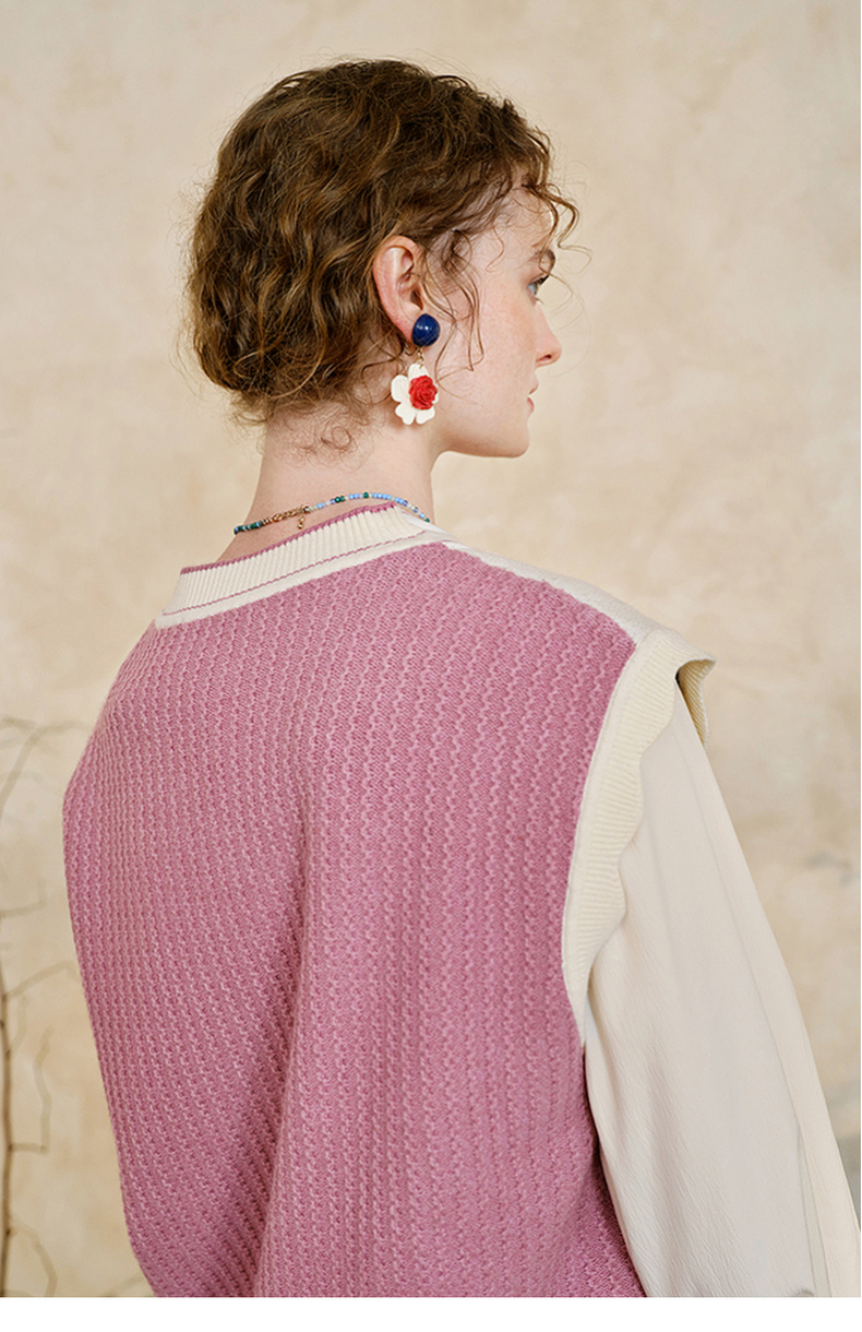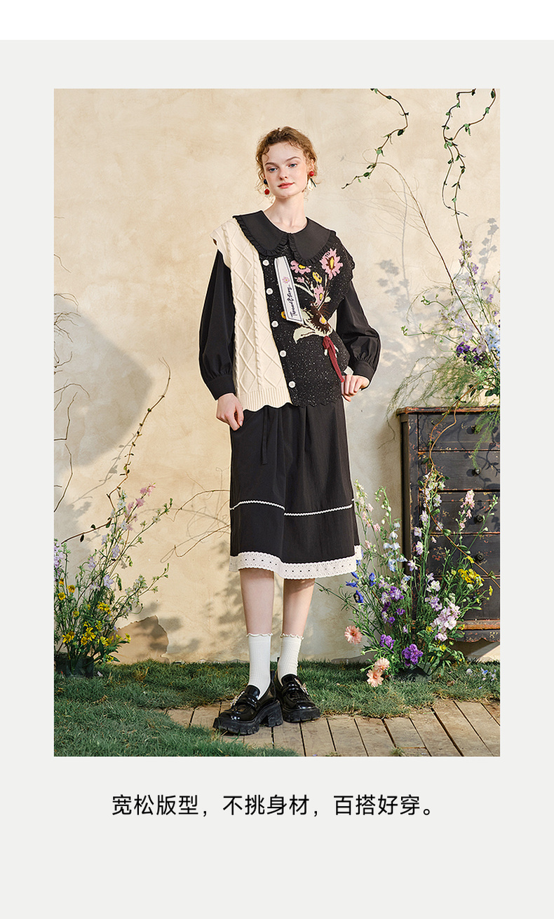 两三事 半梦花醒 2025春季新款拼色花卉图案领带装饰无袖针织衫女