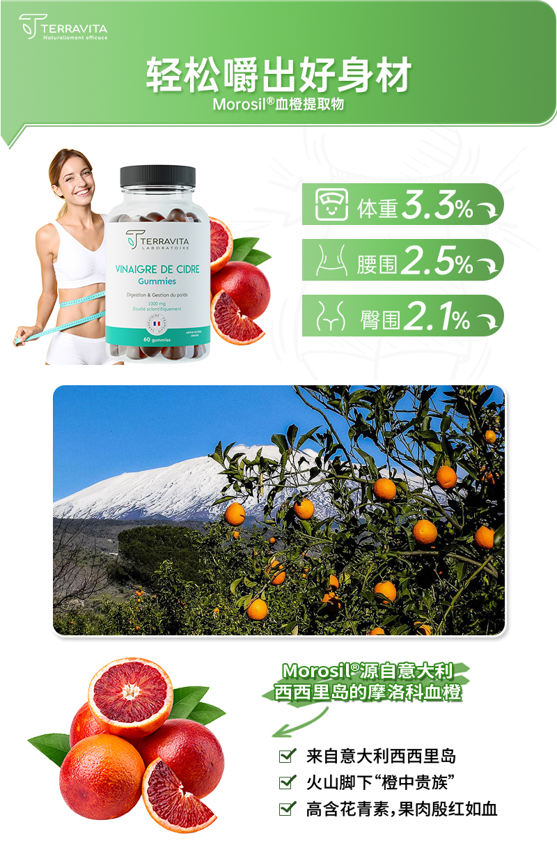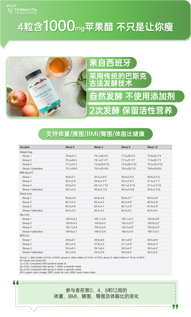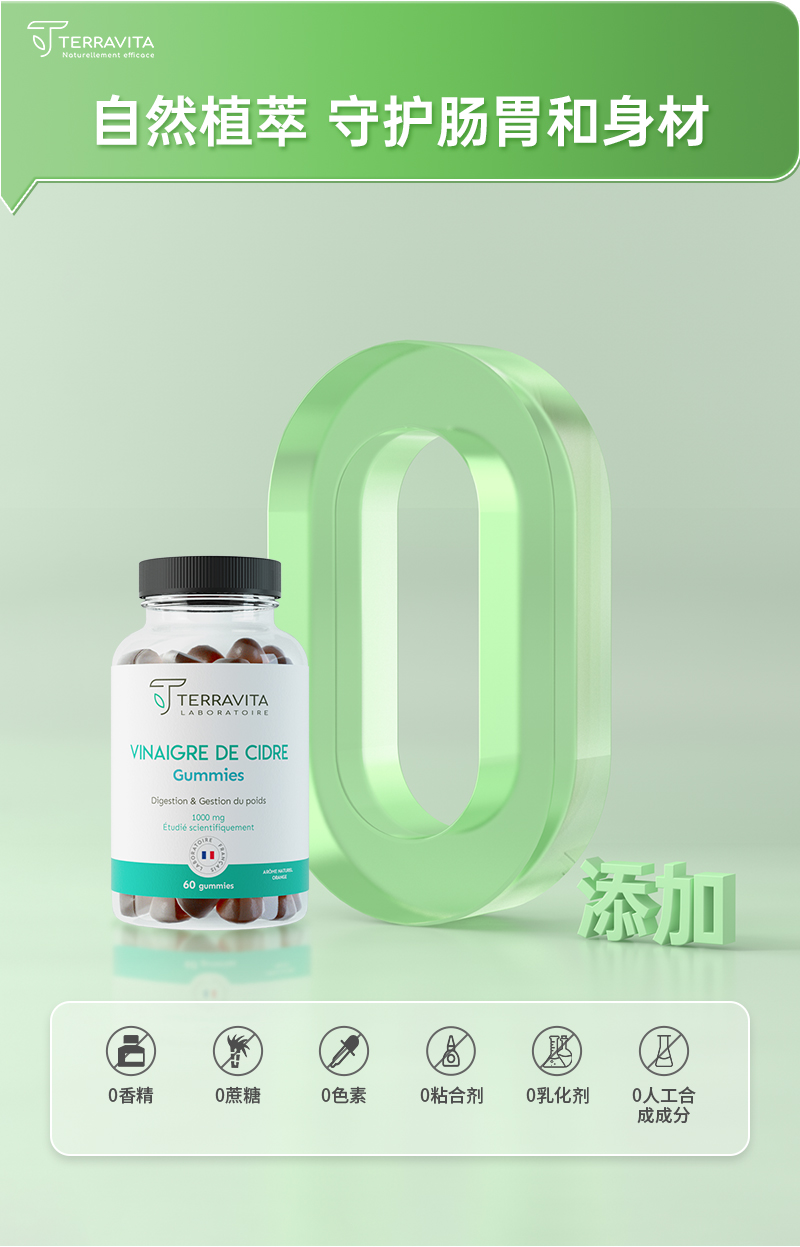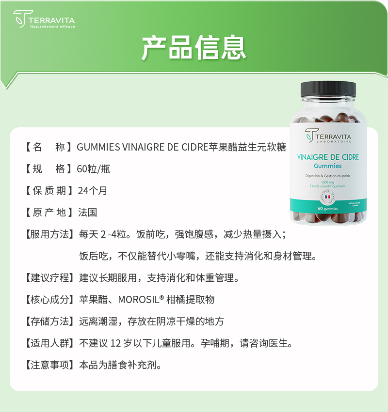 【支持消化 体重管理 养颜控血糖 多重养护】苹果醋益生元软糖 60粒/瓶 法国TERRAVITA泰乐维塔