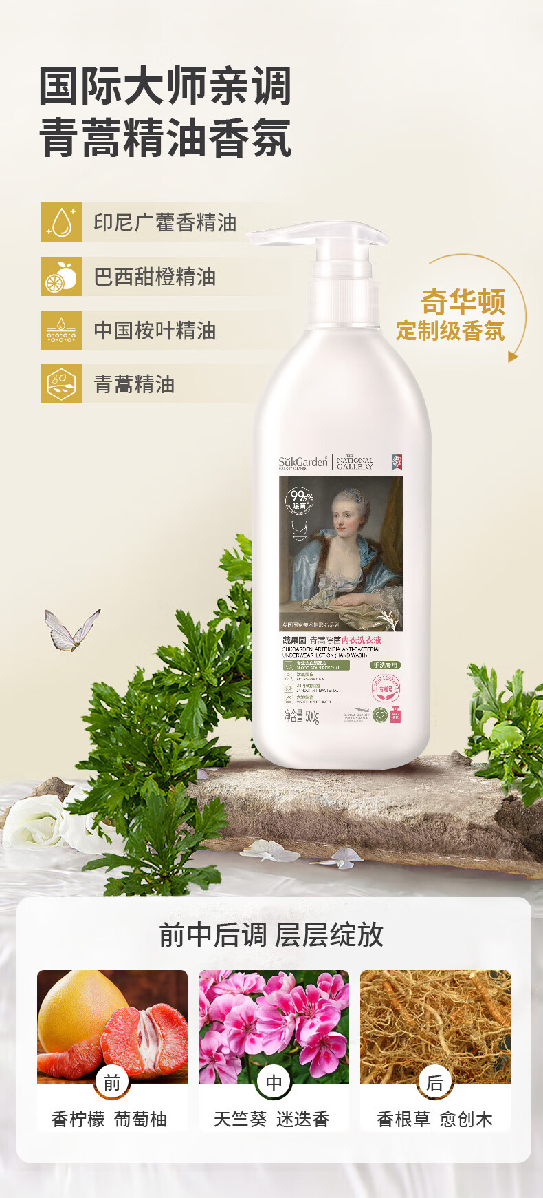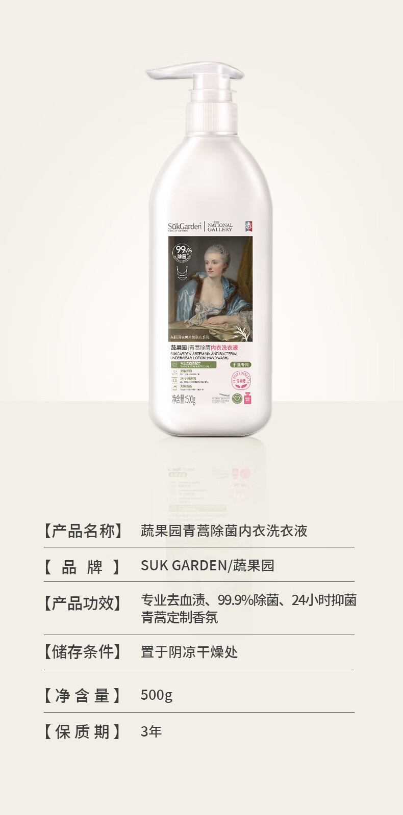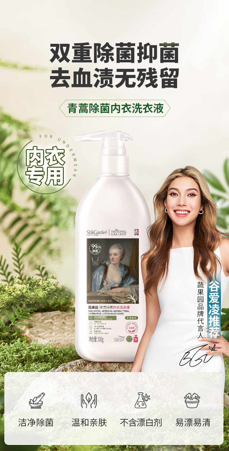 蔬果园内衣洗衣液500g长效菌抑温和亲肤内衣裤专用青蒿除菌内衣清洗液