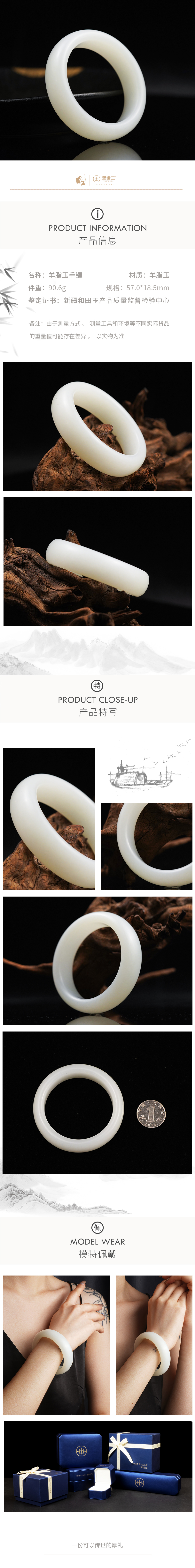 新疆国玉盟世玉和田玉糖羊脂玉手镯57圈口【带证书·顺丰物流】