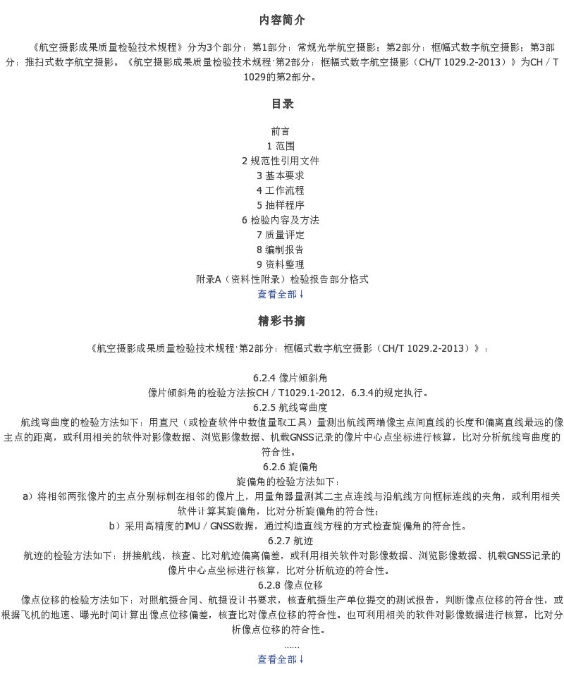 《航空摄影成果质量检验技术规程·第2部分:框幅式数字航空摄影(CH/T 1029.2-2013)》