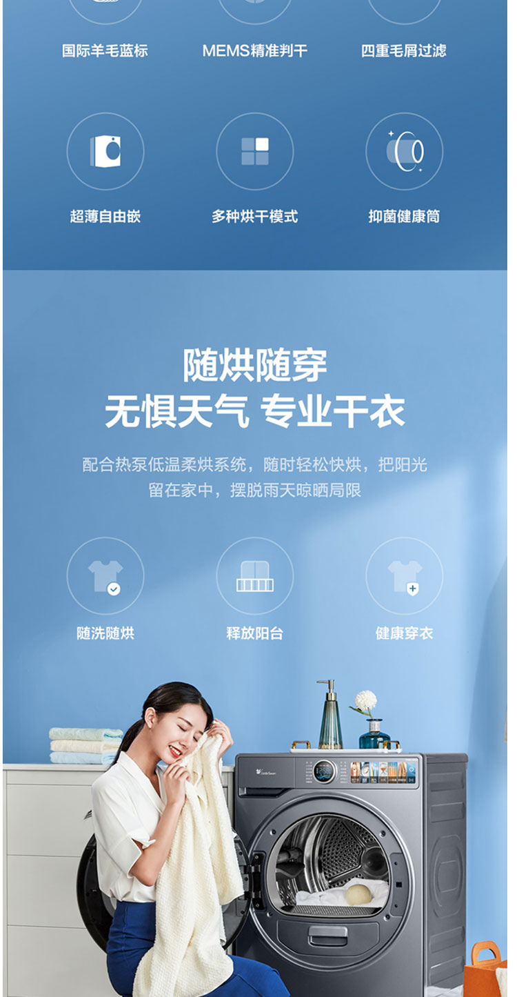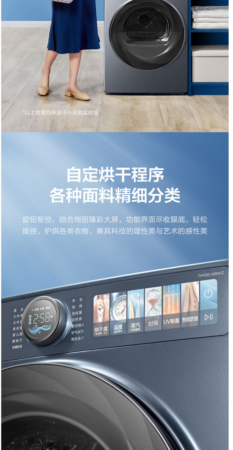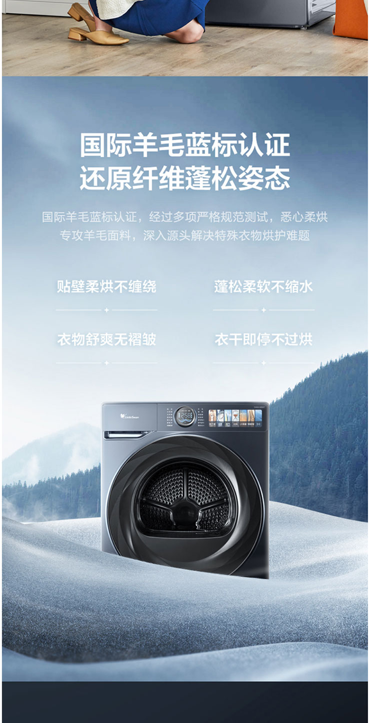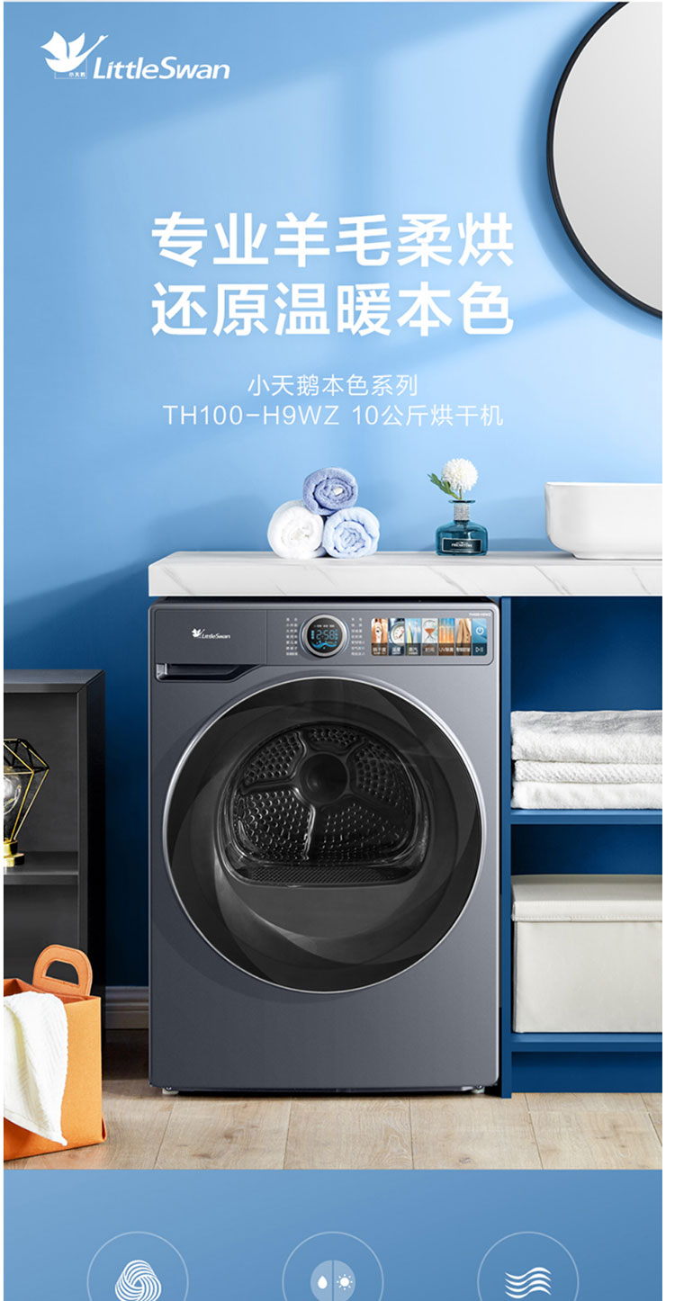 小天鹅 LittleSwan 本色系列 专业羊毛烘 烘干机热泵式 国际羊毛蓝标认证 10公斤 智能家电 TH100-H9WZ