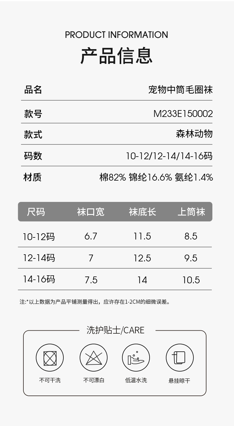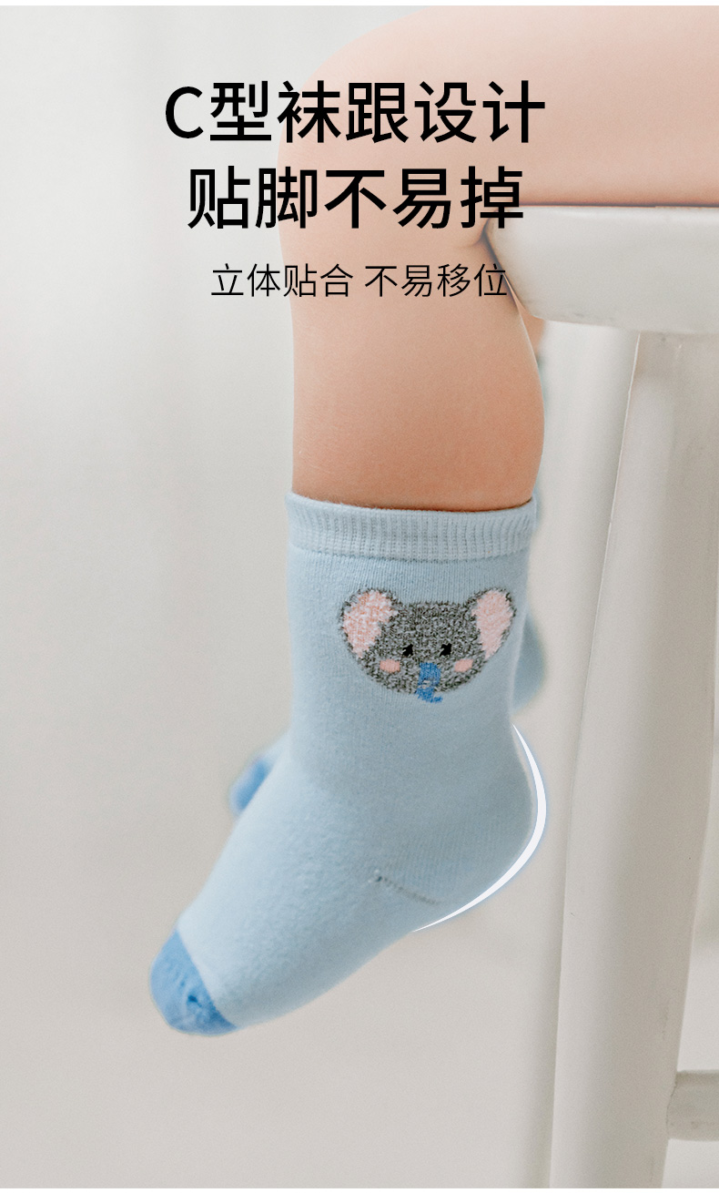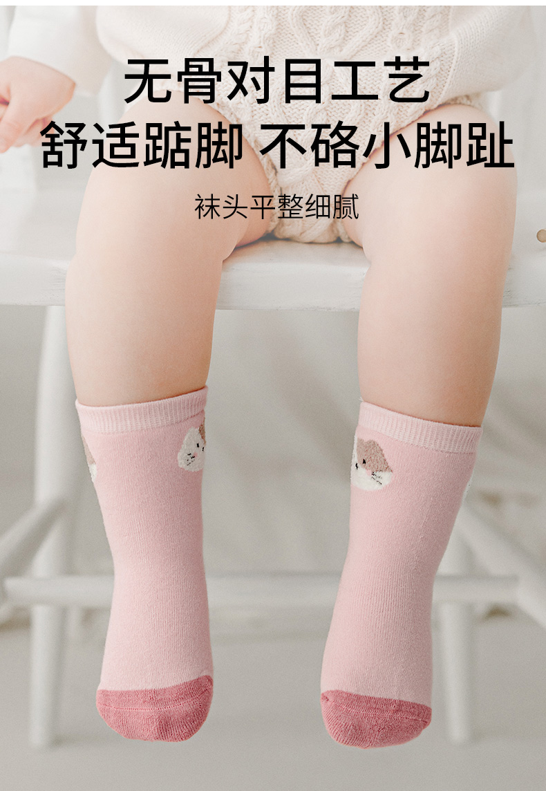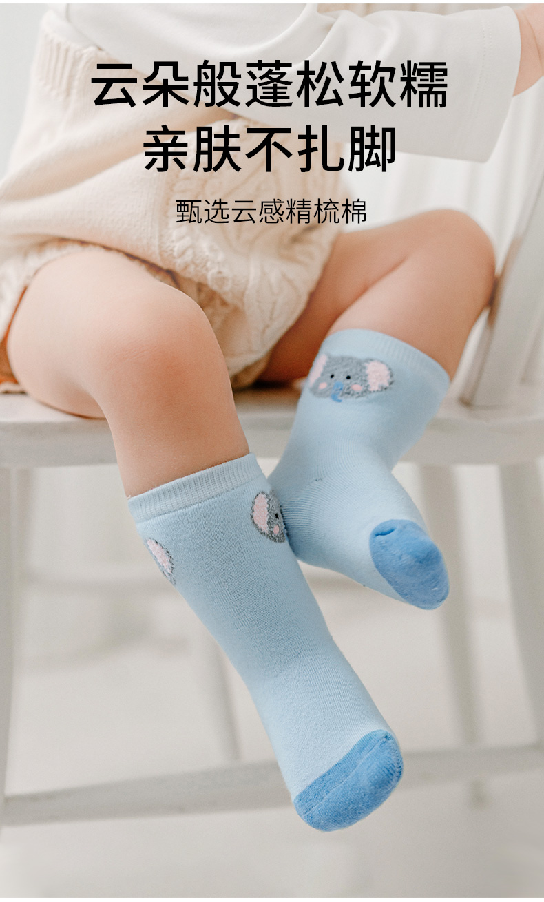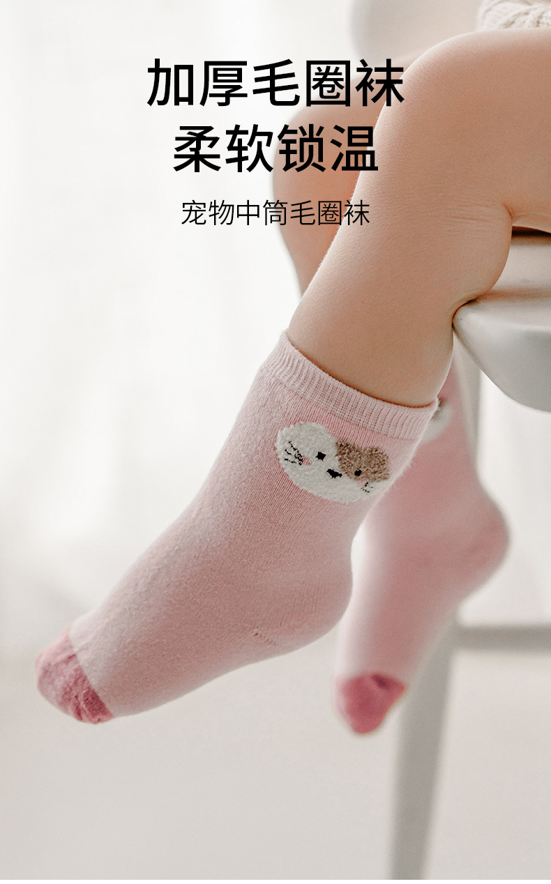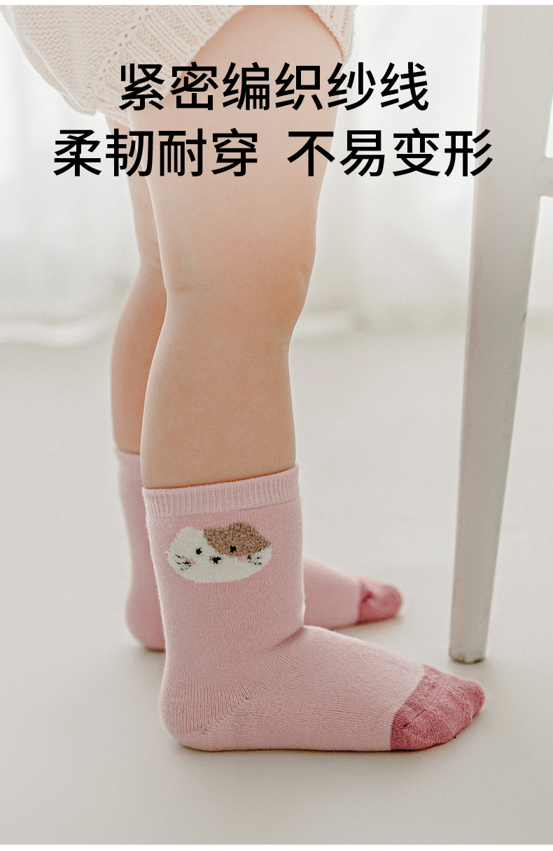 【母婴服配】EMXEE嫚熙婴童萌宠中筒毛圈袜(三双装)