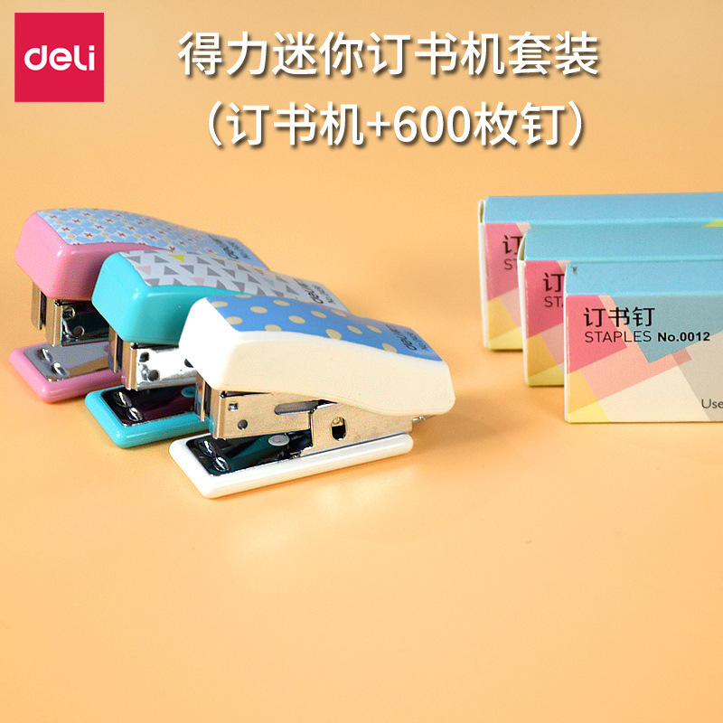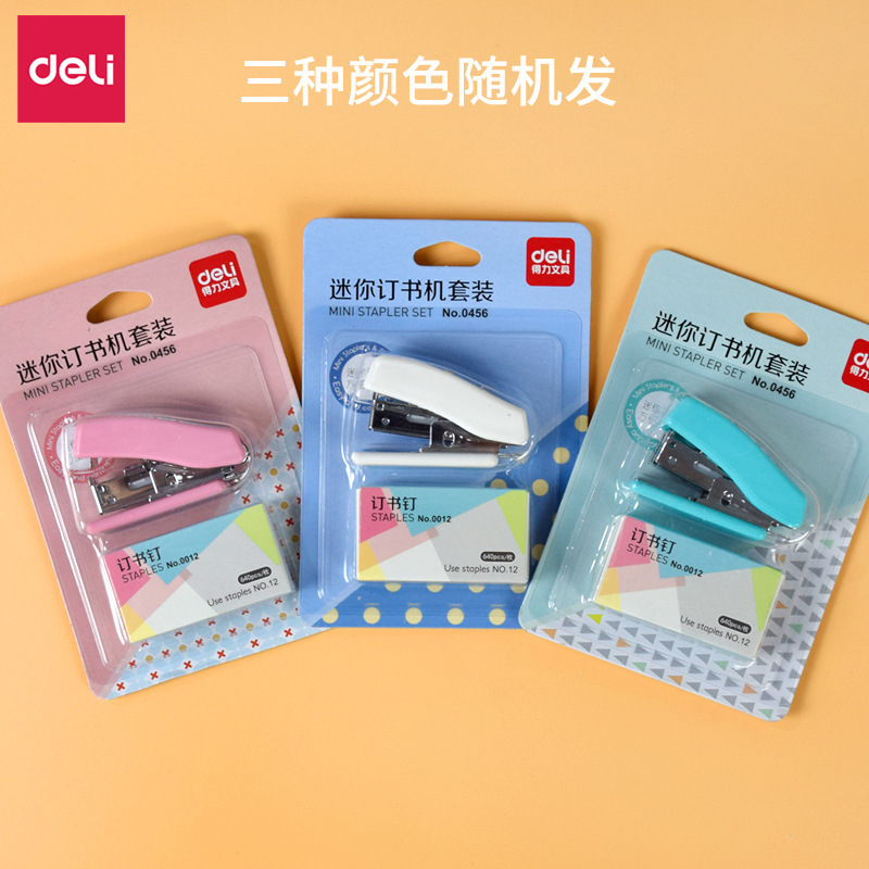 【得力 迷你订书机套装】得力0456订书机套装 可爱卡通订书器 迷你小号订书机学生文具