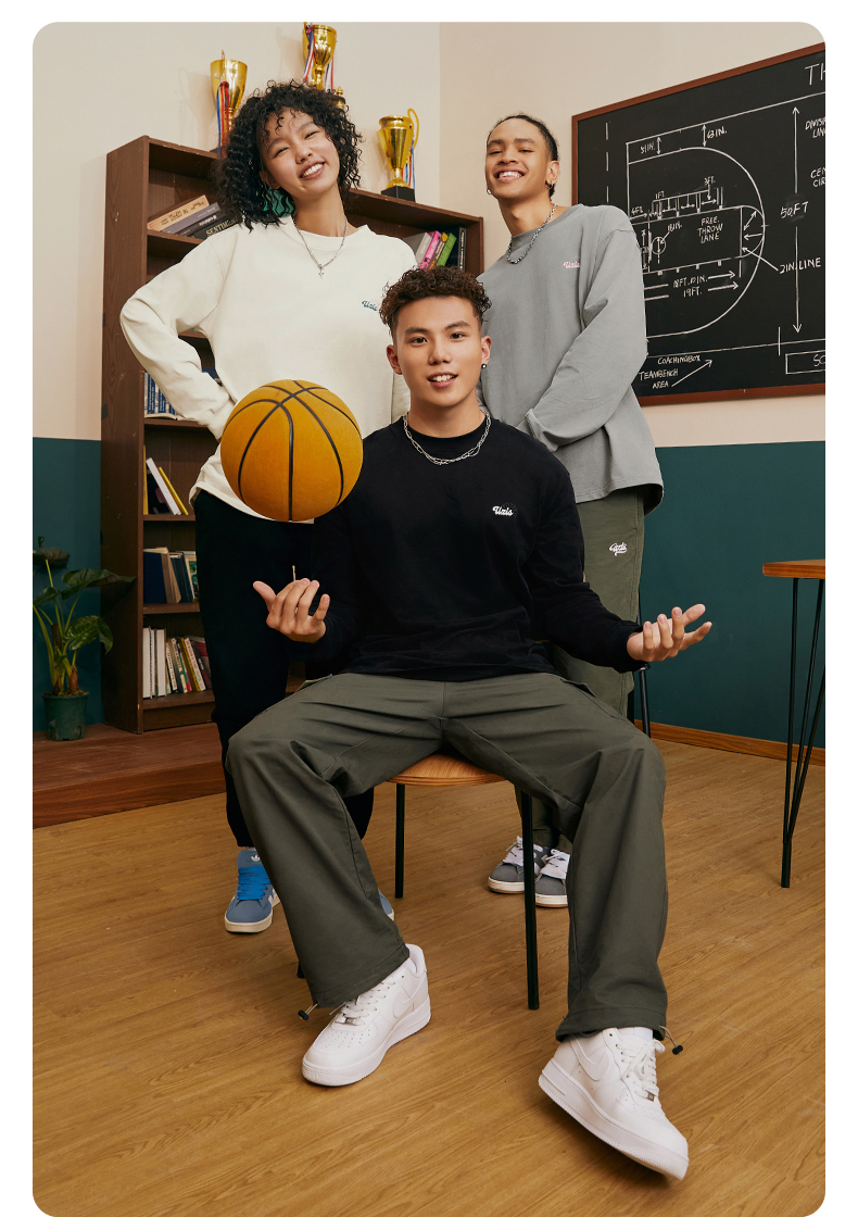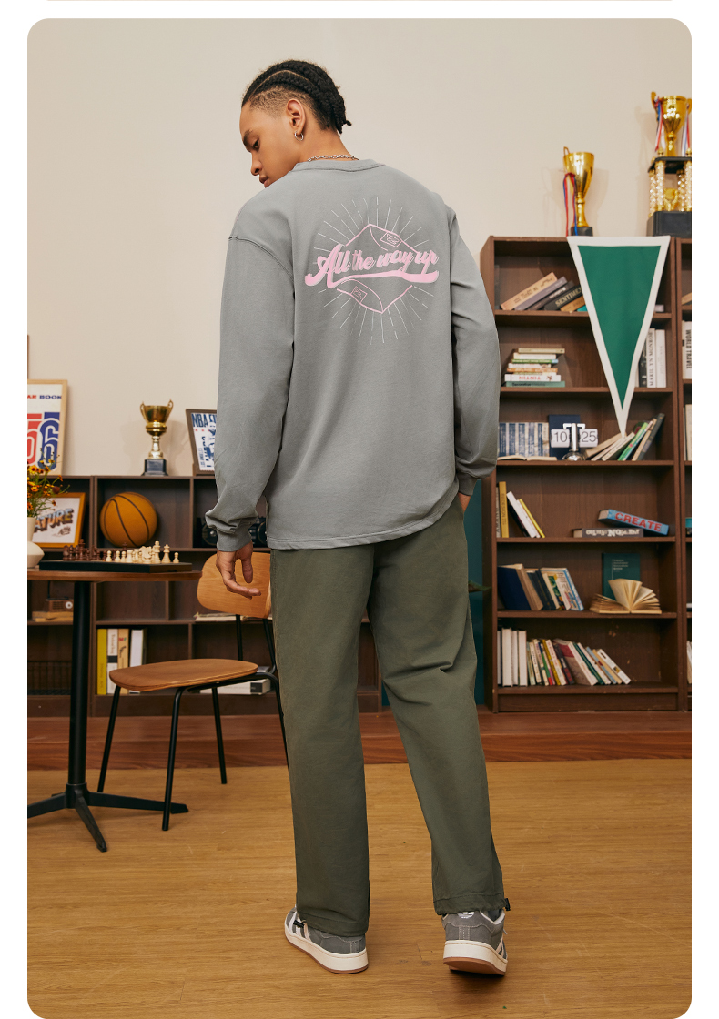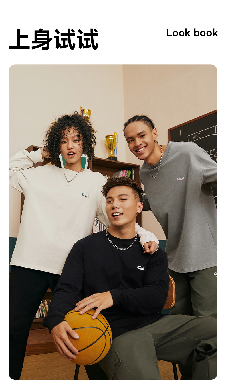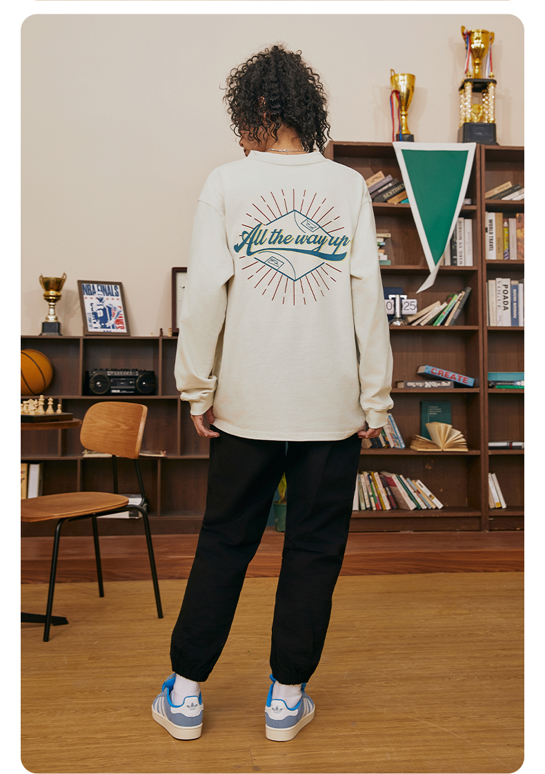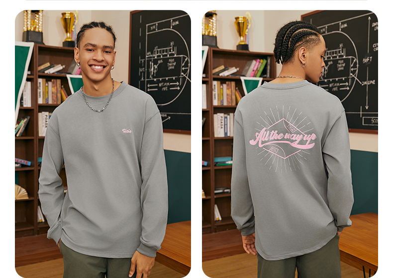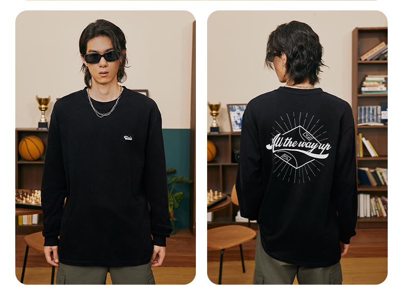 有志者UZIS 篮球运动T恤男复古美式休闲圆领长袖秋季纯棉上衣溢彩