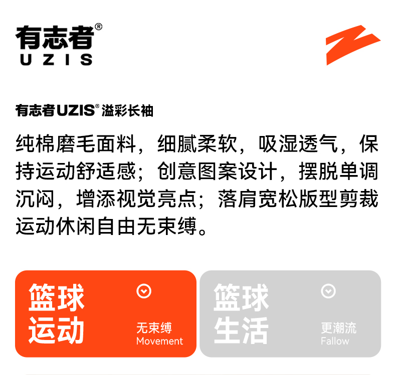 有志者UZIS运动长袖投篮服速干透气训练服全能