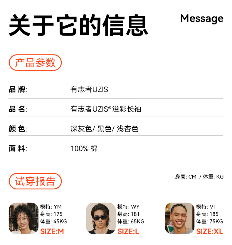 【秒杀】有志者UZIS 训练运动针织纯棉长袖SHOT