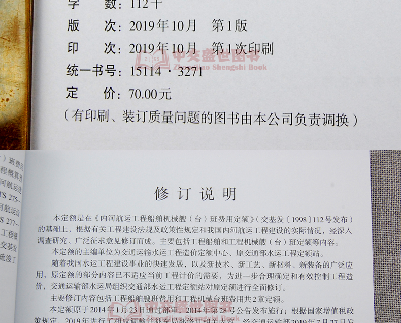 内河航运工程船舶机械艘(台)班费用定额(JTS/T275-2-2019) 2019版水运定额