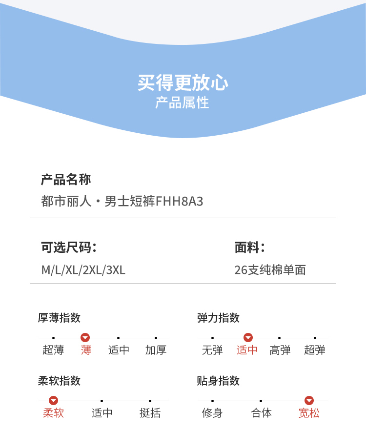 都市丽人男士棉质短裤薄26支纯棉单面超值精选单条裤FHH8A3