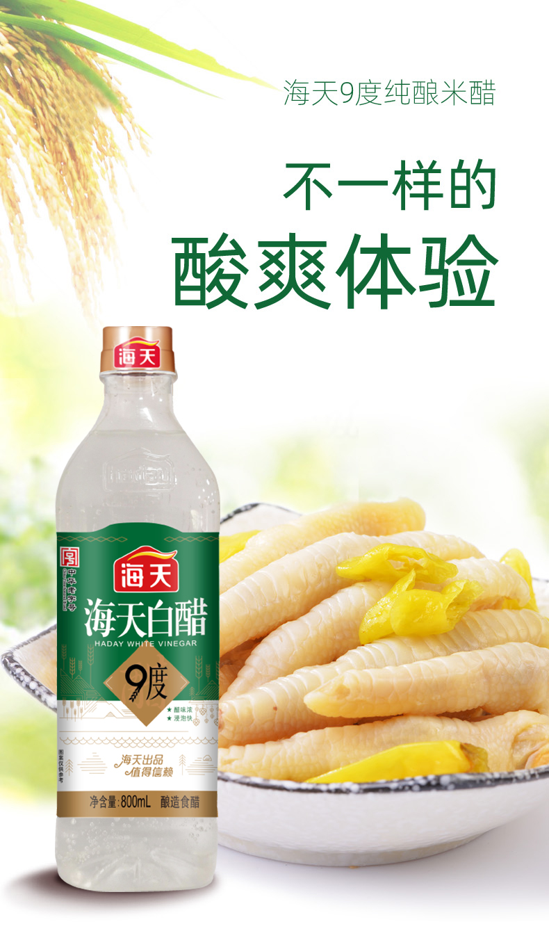 【自营】海天白醋9度800mL+海天精制料酒800mL调味品组合装(中华老字号)