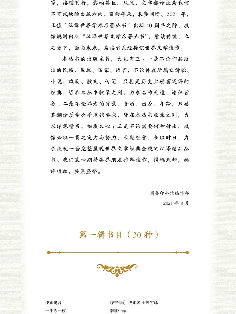 ·世界文学,完整呈现:不计代价,长期积累,力求成就反映世界文学经典全貌的汉译精品丛书。