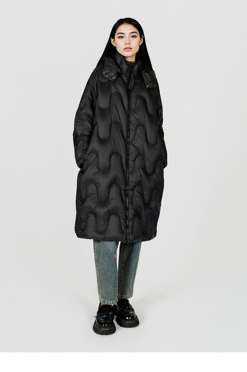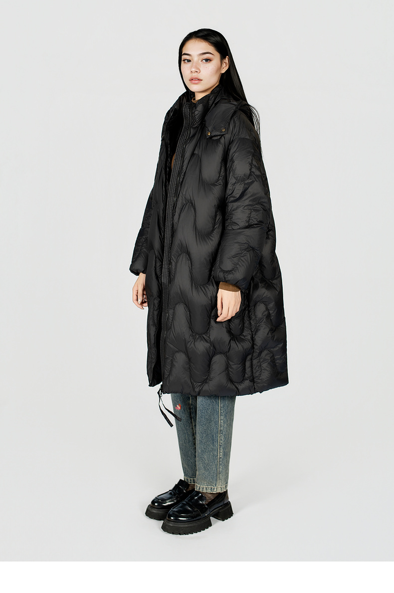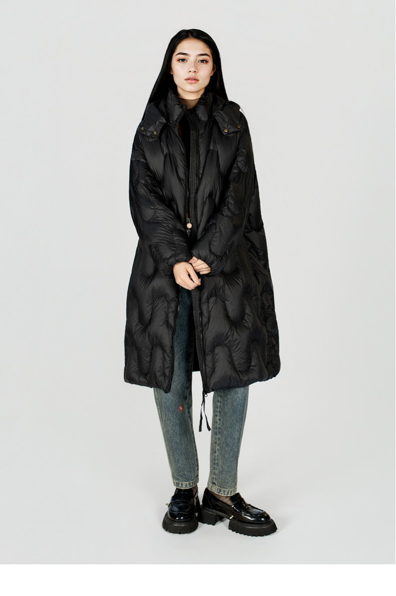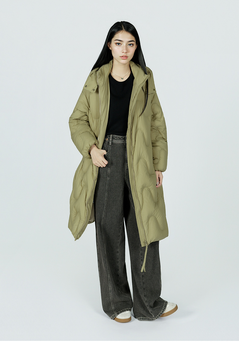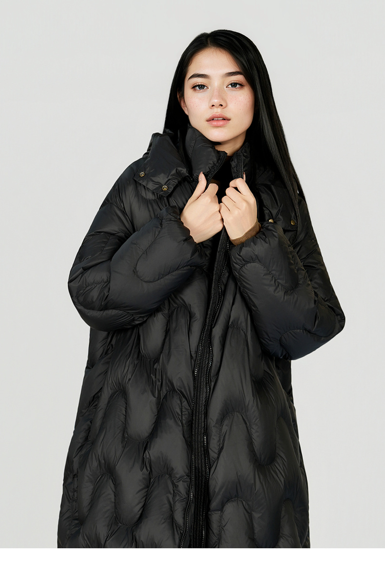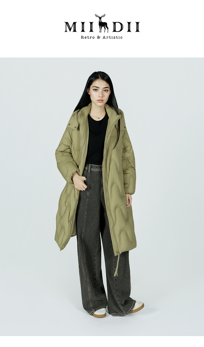 谜底中长款羽绒服女2025冬季新款简约百搭加厚鸭绒连帽257MY7865