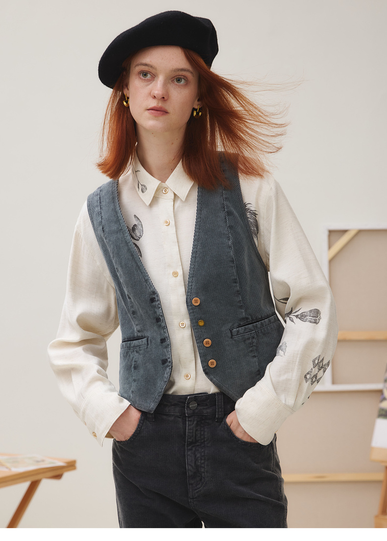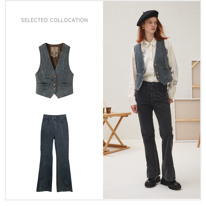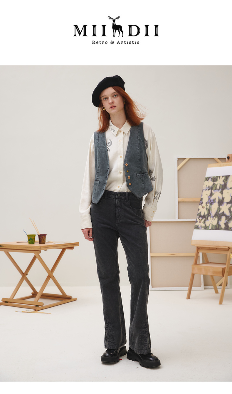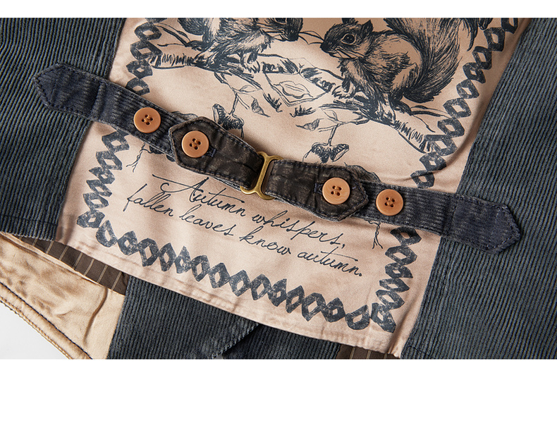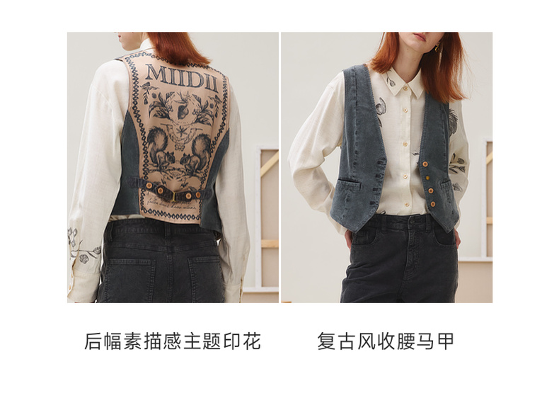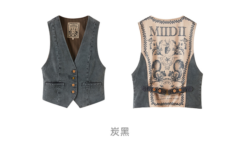 谜底马夹女2025秋新品复古收腰灯芯绒牛仔手绘印花马甲253MM1222