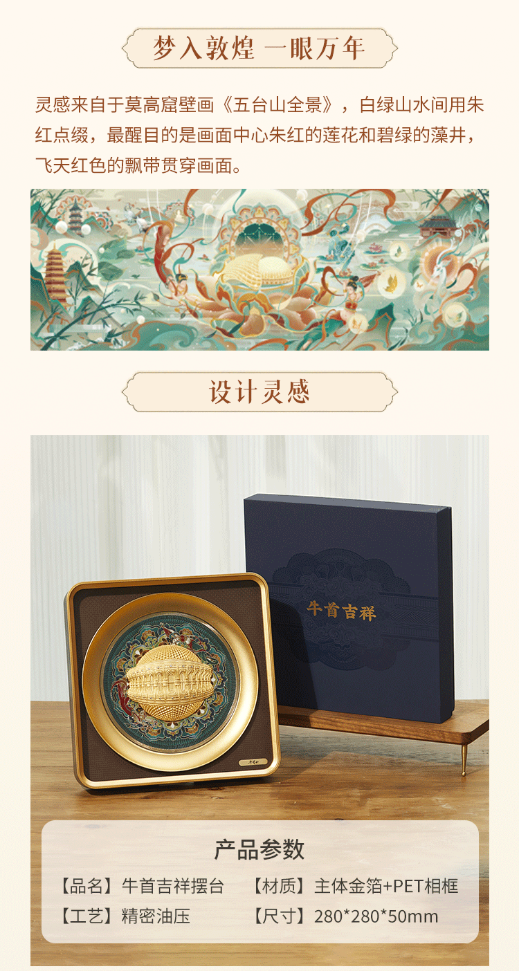 牛首山牛首吉祥摆台金箔高级感敦煌元素原创装饰摆件玄关客厅摆台礼物