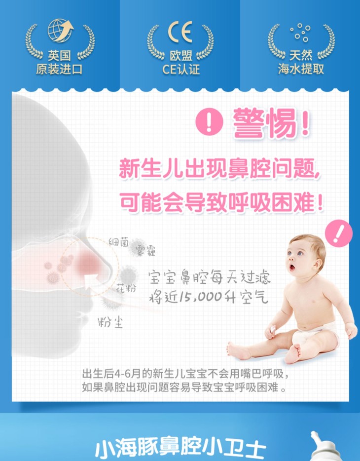 法国Sterimar舒德尔玛 小海豚 婴儿鼻炎喷雾洗鼻器通气舒缓鼻塞便携100ml
