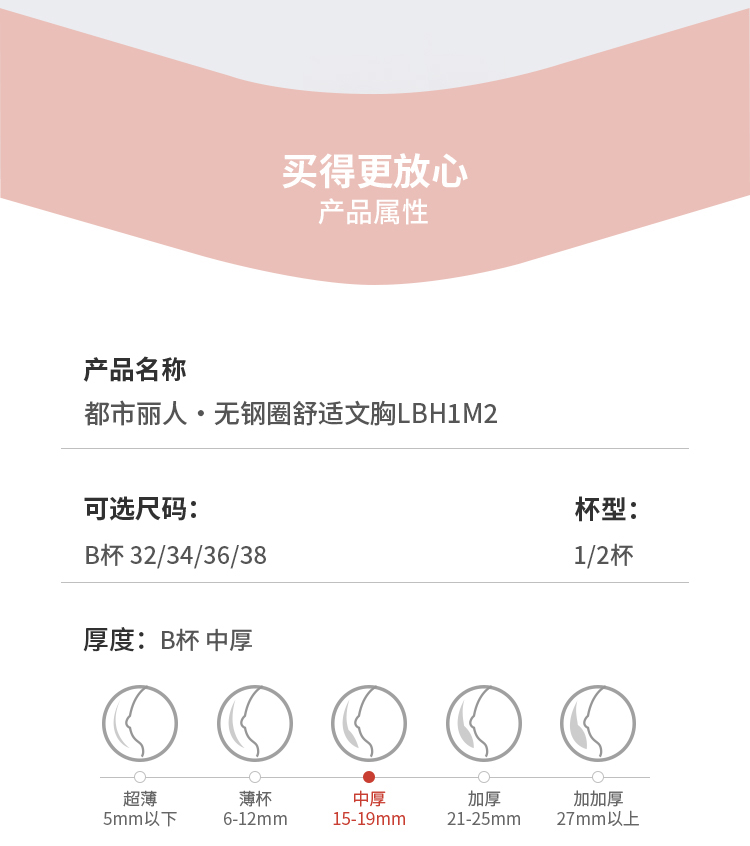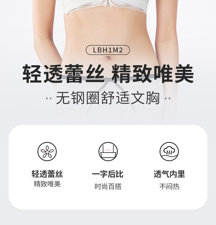 都市丽人自然舒适B杯常规内衣中厚蕾丝树脂胶圈常规文胸LBH1M2