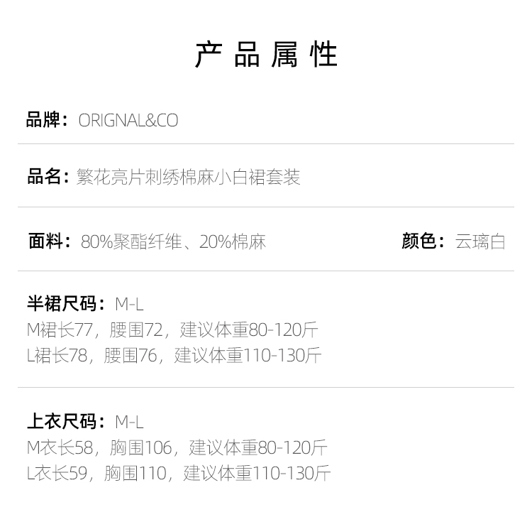ORIGNAL&CO · 繁花亮片刺绣棉麻小白裙套装,奢牌同款刺绣工艺,棉麻混纺面料,轻盈有气质【3-5天发货,周末顺延】