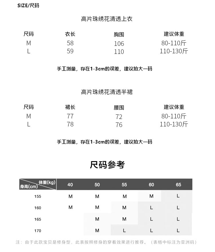 △套装涵盖:珠片绣花七分袖上衣、珠片绣花半裙